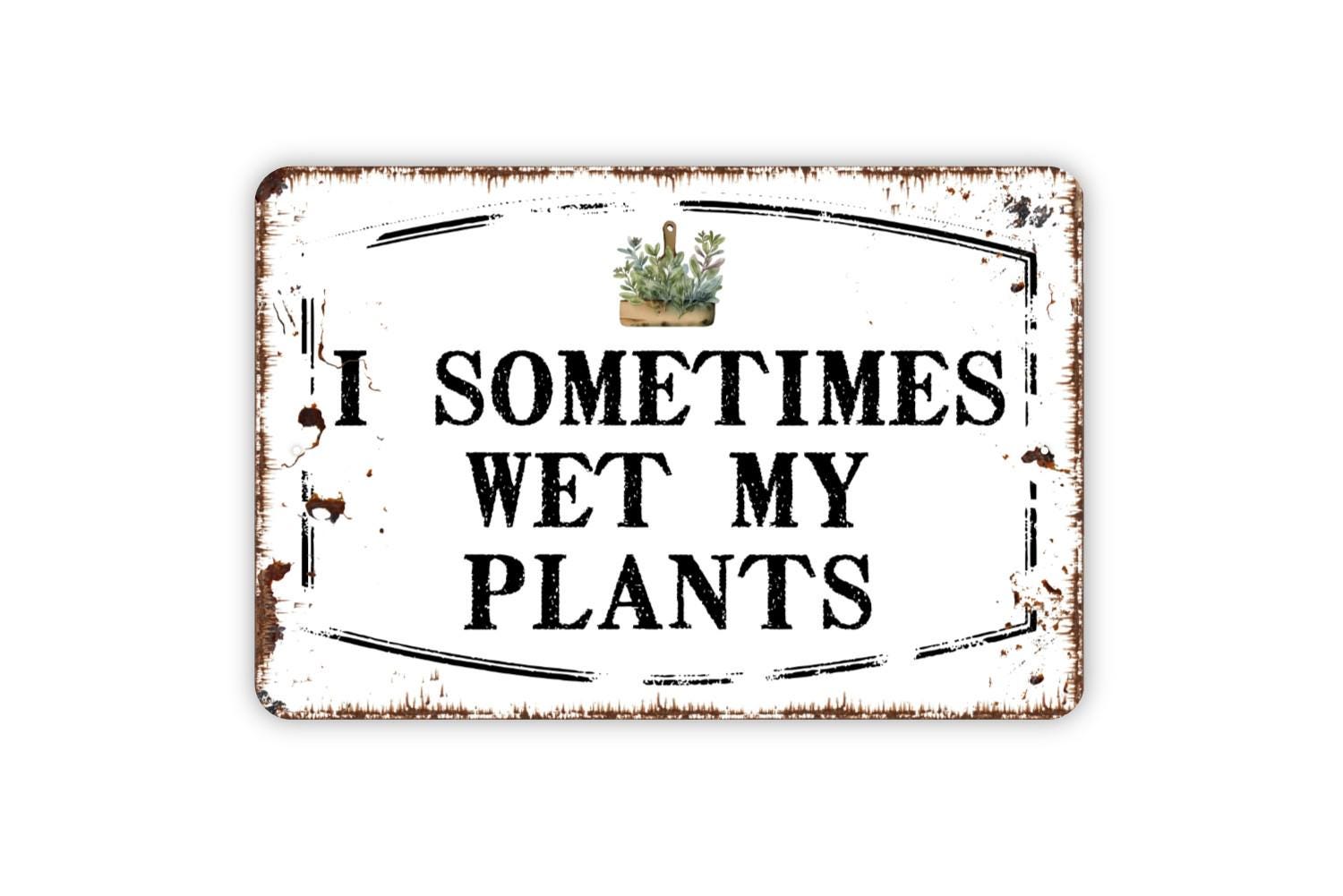I Sometimes Wet My Plants Sign Metal or Vinyl Sticker | Funny Garden Sign | Plant Lover Wall Art | Greenhouse Decor | Gardening Humor Gift