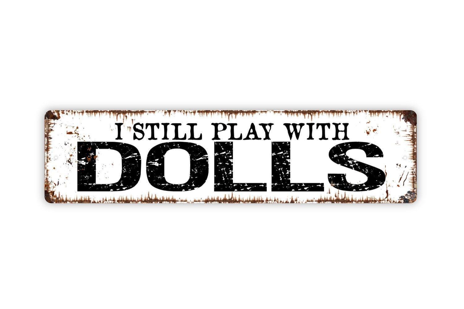 I Still Play With Dolls Sign - Dollhouse Dolly Dollies Baby Play Girls At Heart Rustic Street Metal Sign or Door Name Plate Plaque