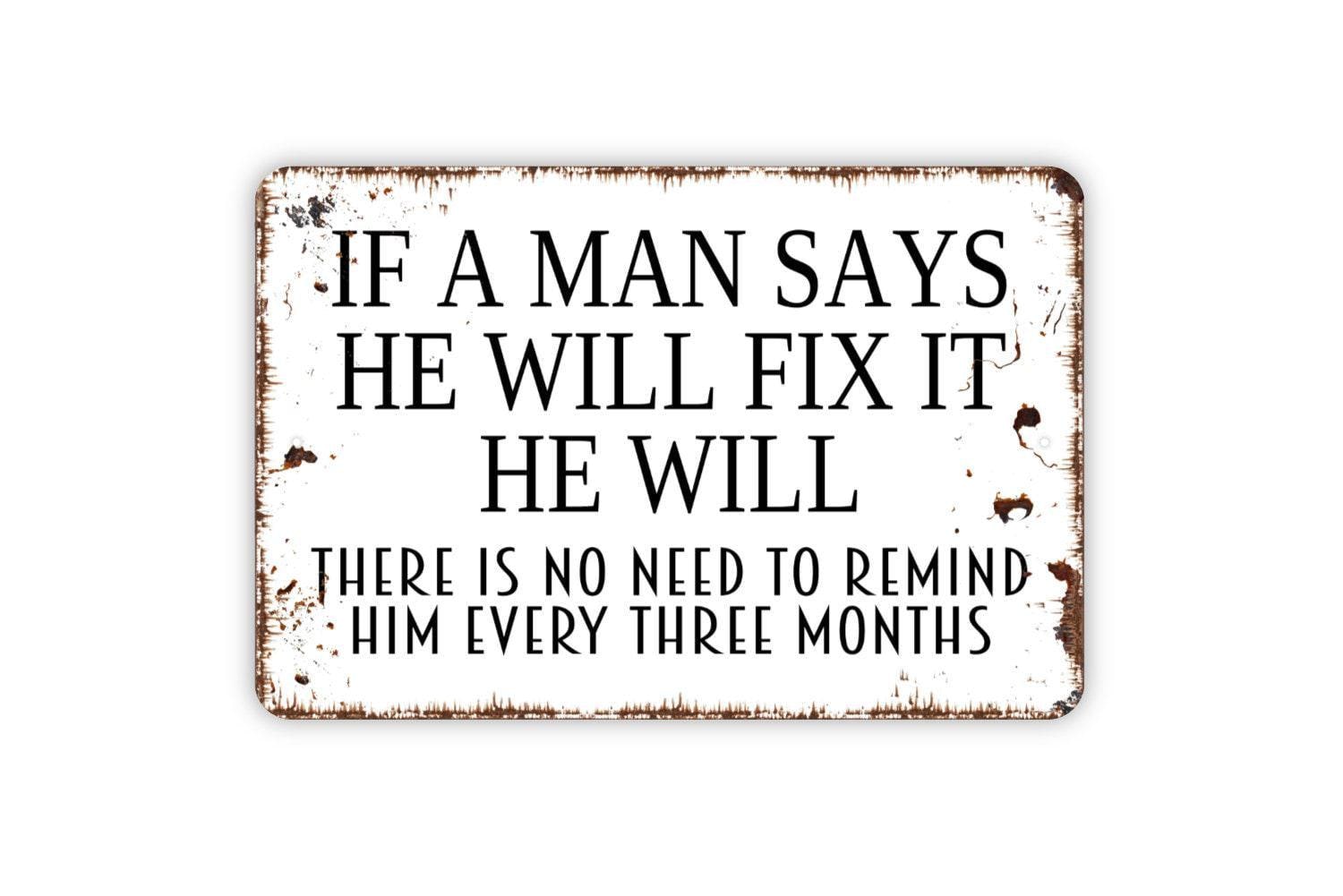 If A Man Says He Will Fix It He Will Sign | Funny Garage or Workshop Wall Sign | From The Wife Metal Sign or Vinyl Sticker Man Cave Shop