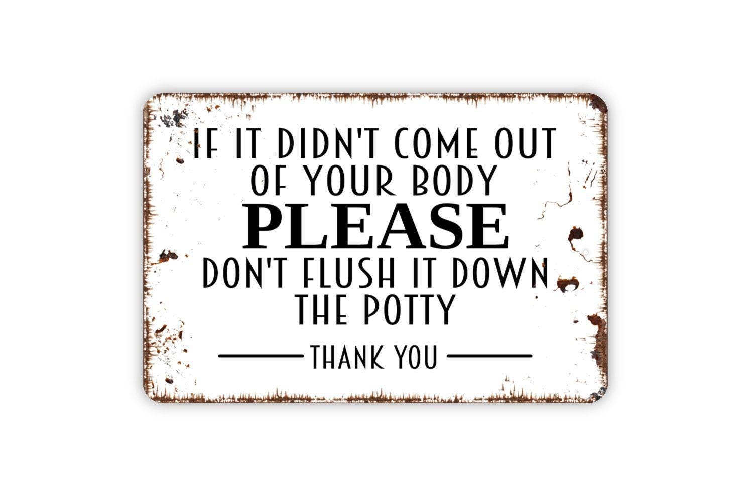 If It Didn't Come Out Of Your Body Please Don't Flush It Down The Potty Thank You Sign - Metal Wall Art Bathroom Restroom Toilet Sign