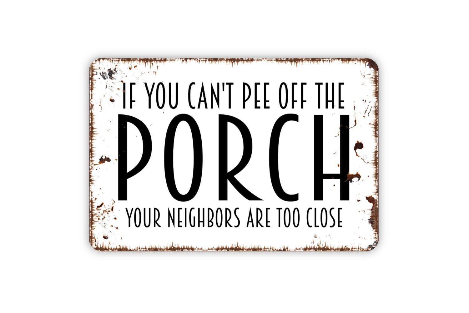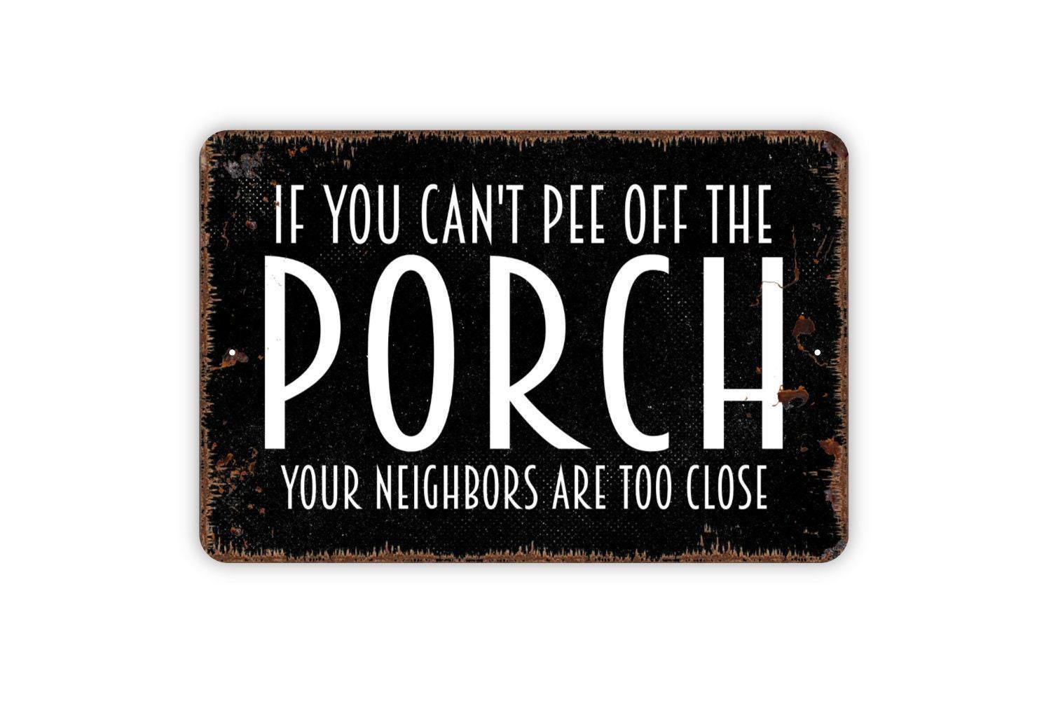 If You Can't Pee Off The Porch Your Neighbors Are Too Close Sign - Funny Deck Patio Backyard Restroom Bathroom Outdoor Indoor Metal Wall Art