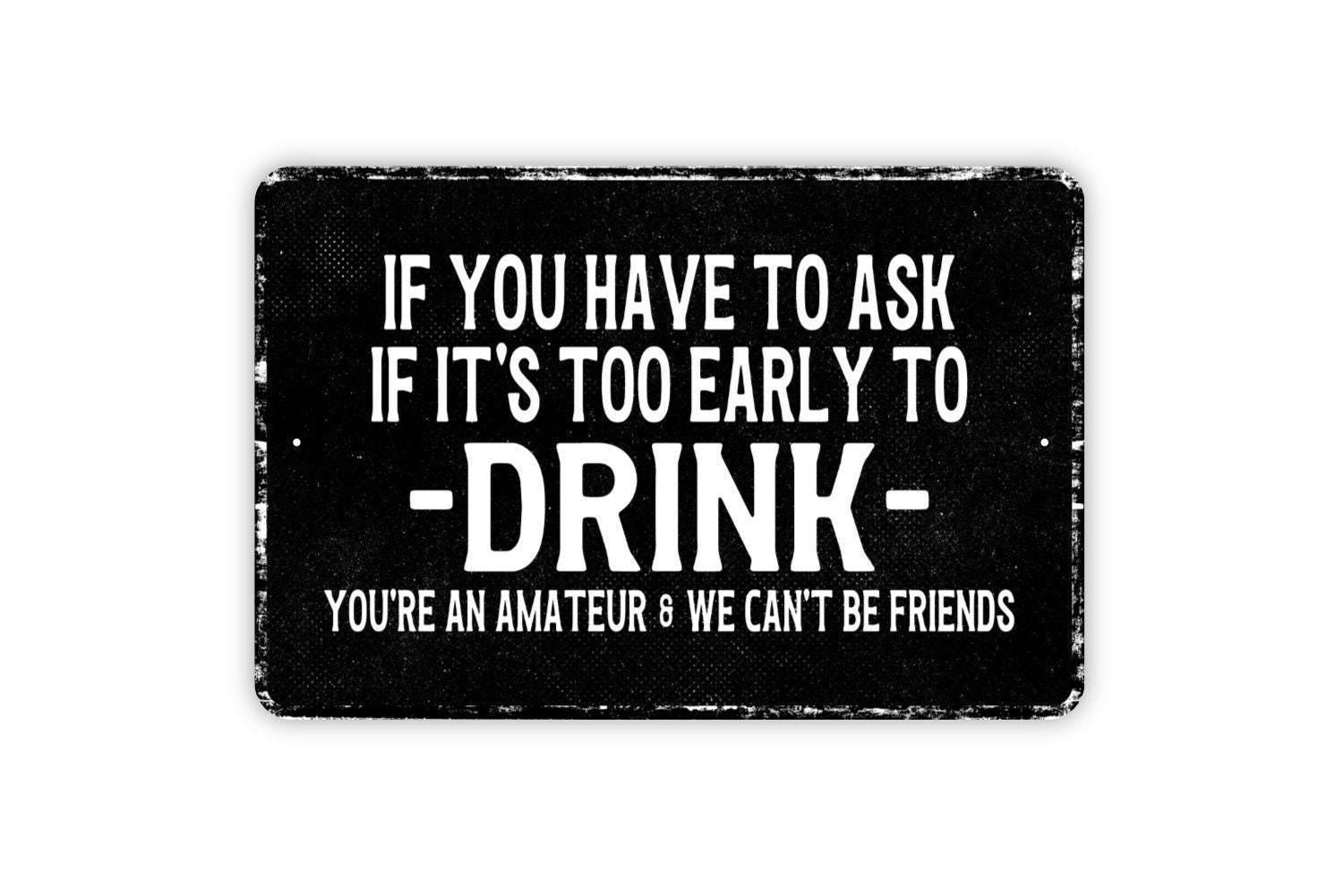 If You Have To Ask If It’s Too Early To Drink You’re An Amateur And We Can’t Be Friends Sign Metal Wall Art or Vinyl Sticker Funny Bar Decor