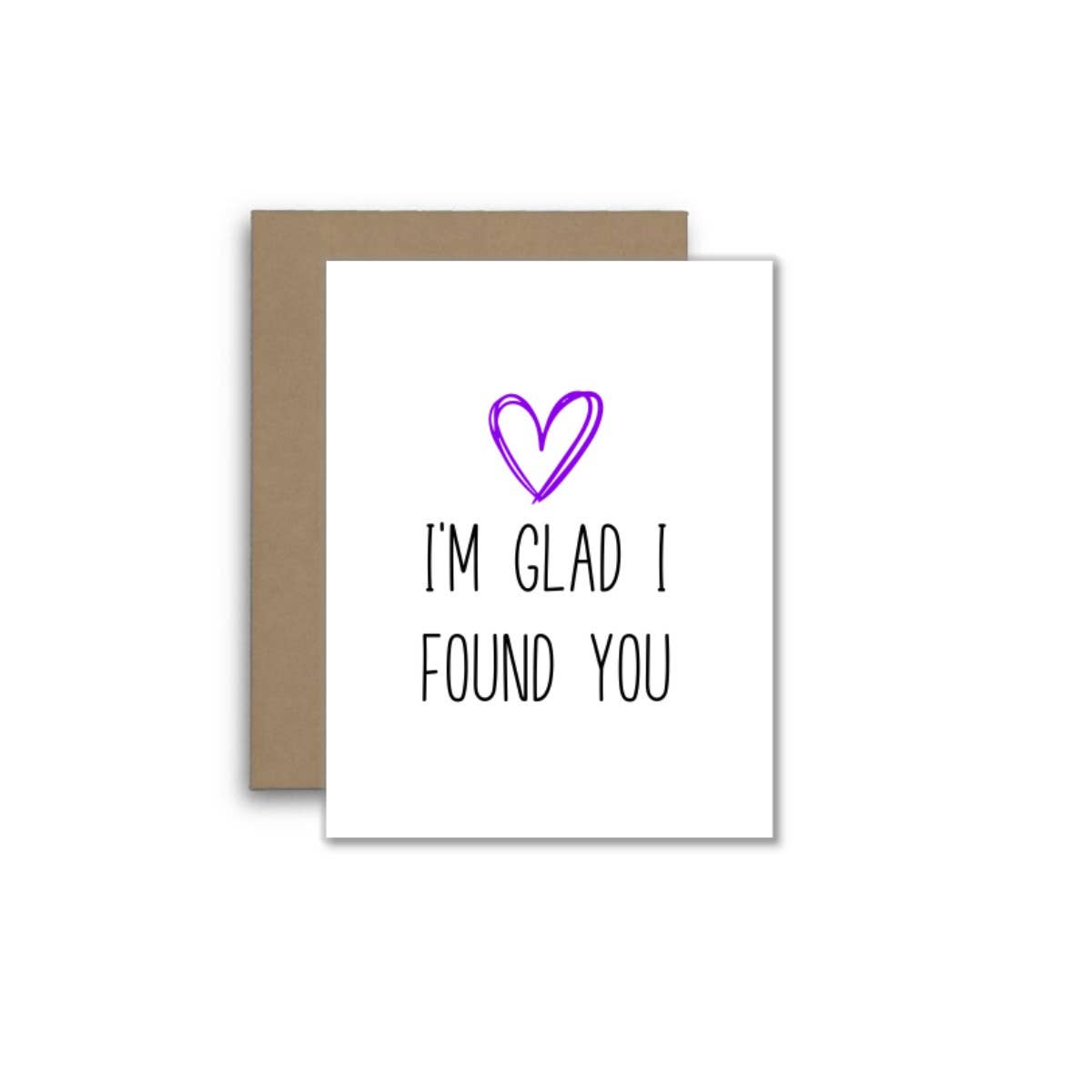 Share your love and gratitude with this “I’m Glad I Found You” greeting card, featuring a simple yet heartfelt heart design. Perfect for anniversaries, Valentine’s Day, or just-because moments, it’s a beautiful way to let someone know how much they mean to you.