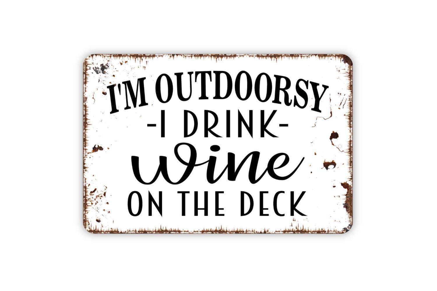 I'm Outdoorsy I Drink Wine On The Deck Sign - Funny Backyard Bar Metal Wall Art - Indoor or Outdoor