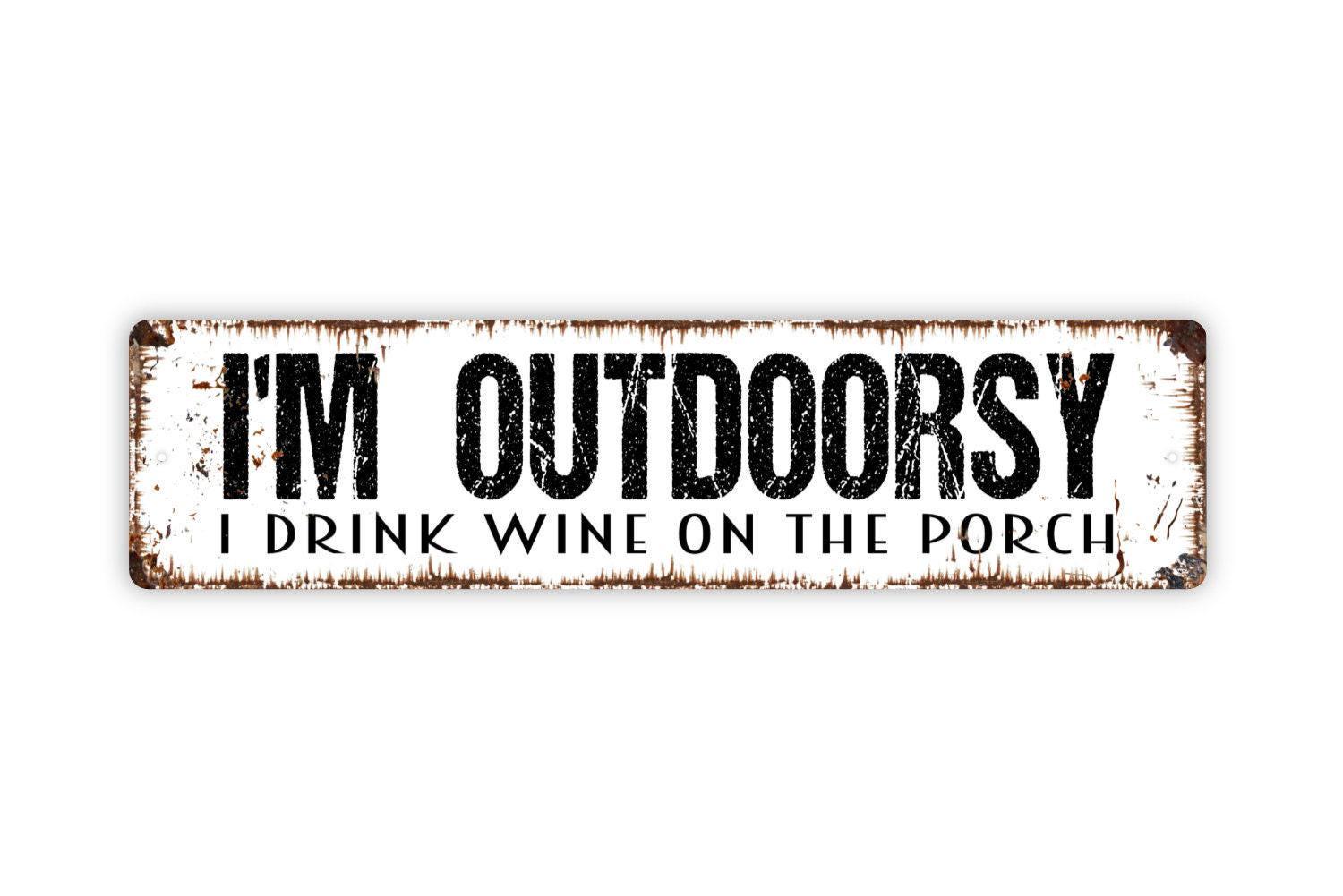I'm Outdoorsy I Drink Wine On The Porch Metal Sign, Custom Funny Farmhouse Style, Vinyl Sticker Or Street Sign or Door Name Plate Plaque