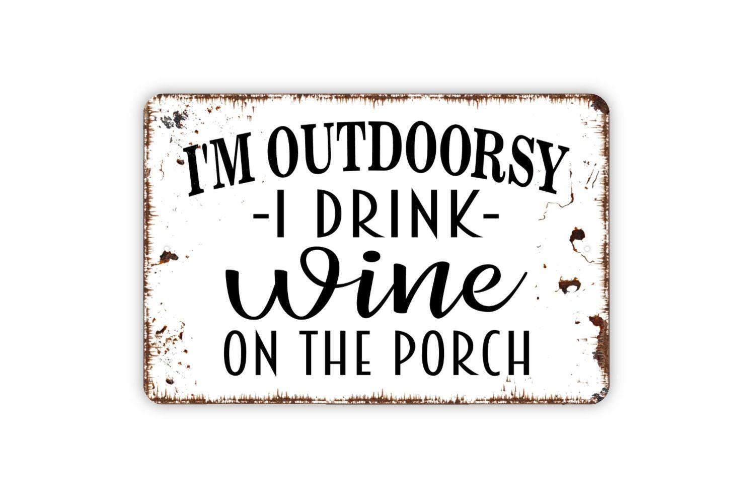 I'm Outdoorsy I Drink Wine On The Porch Sign - Funny Backyard Bar Metal Wall Art - Indoor or Outdoor