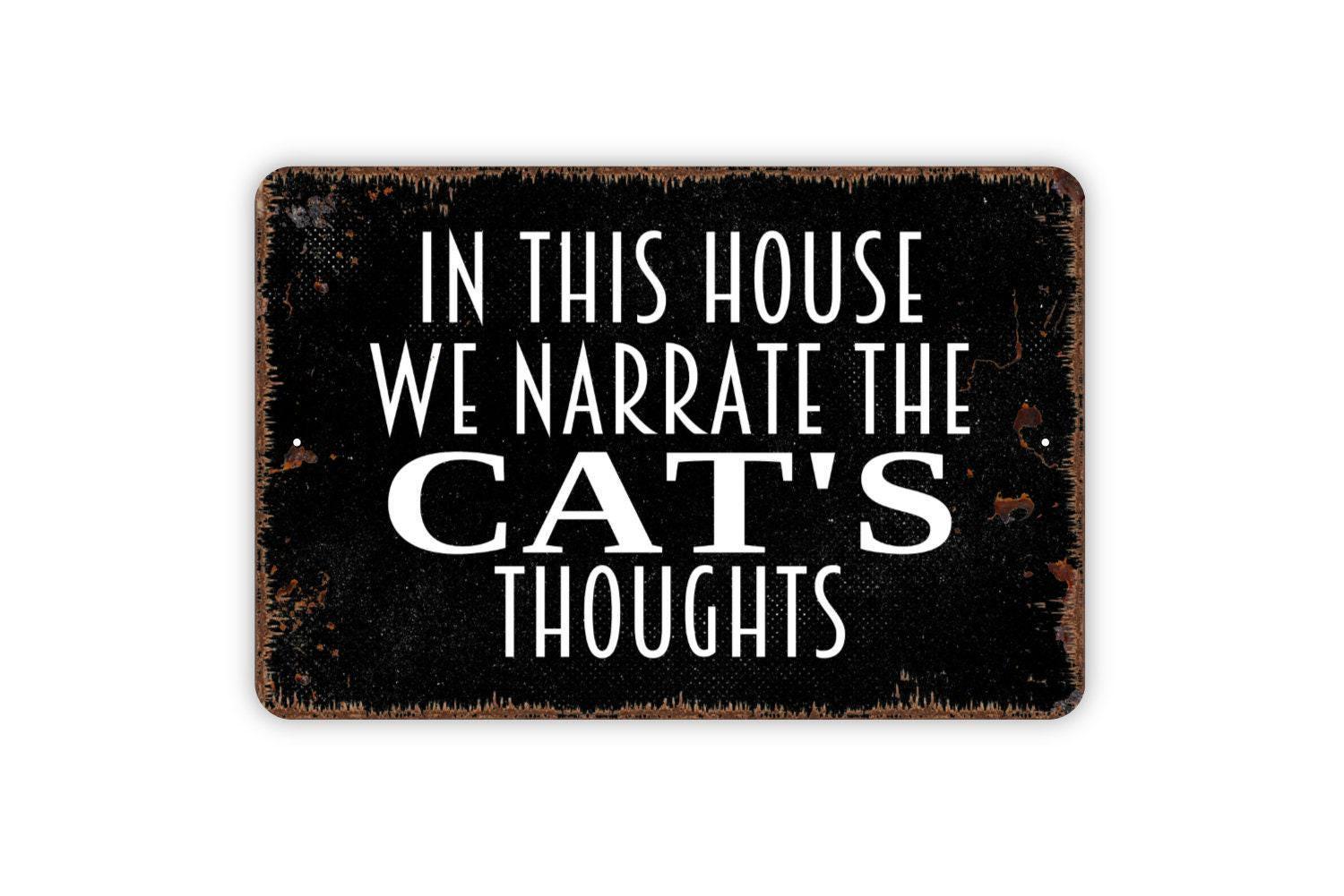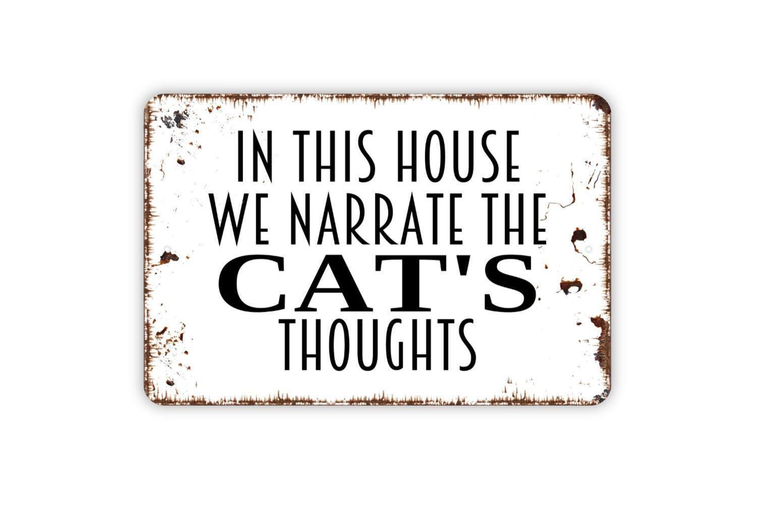 In This House We Narrate The Cat's Thoughts Sign - Funny Cat Indoor or Outdoor Metal Wall Art