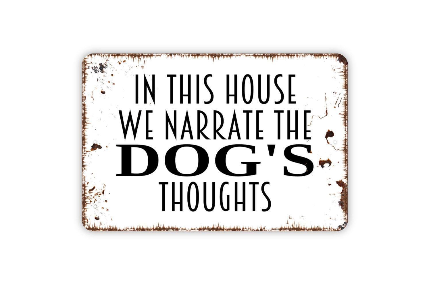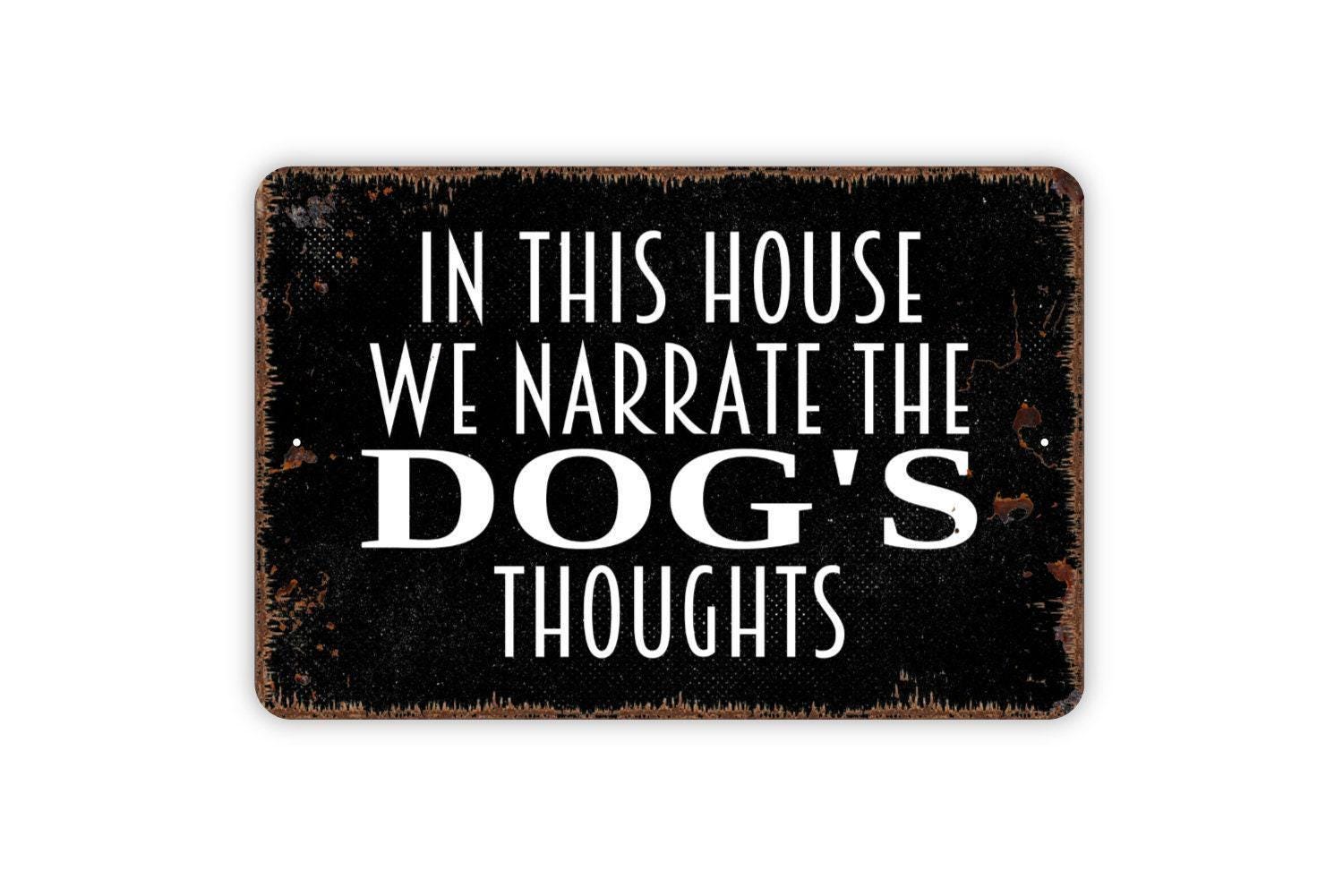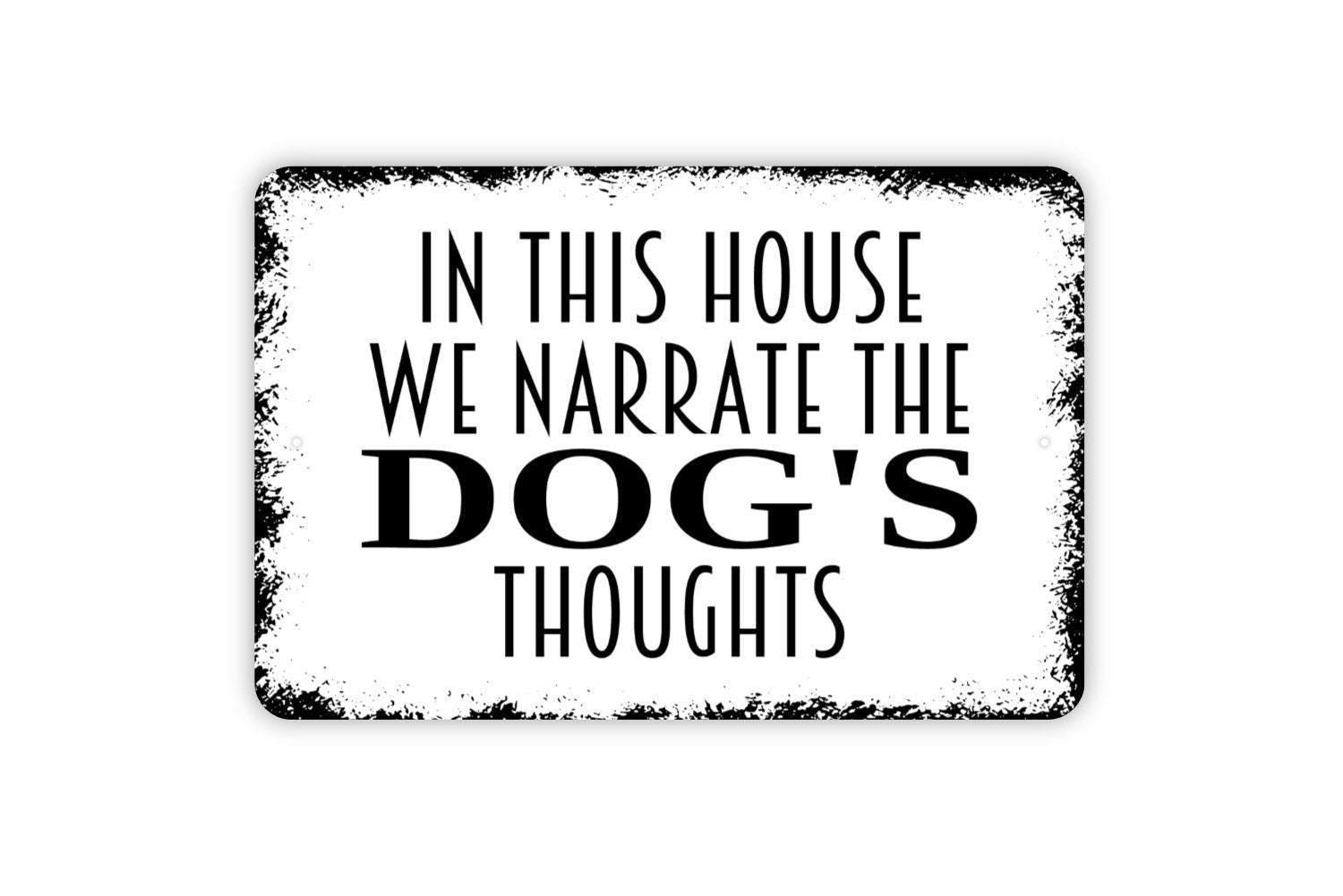 In This House We Narrate The Dog's Thoughts Sign - Funny Dog Farmhouse Contemporary Modern Wall Art Metal Sign