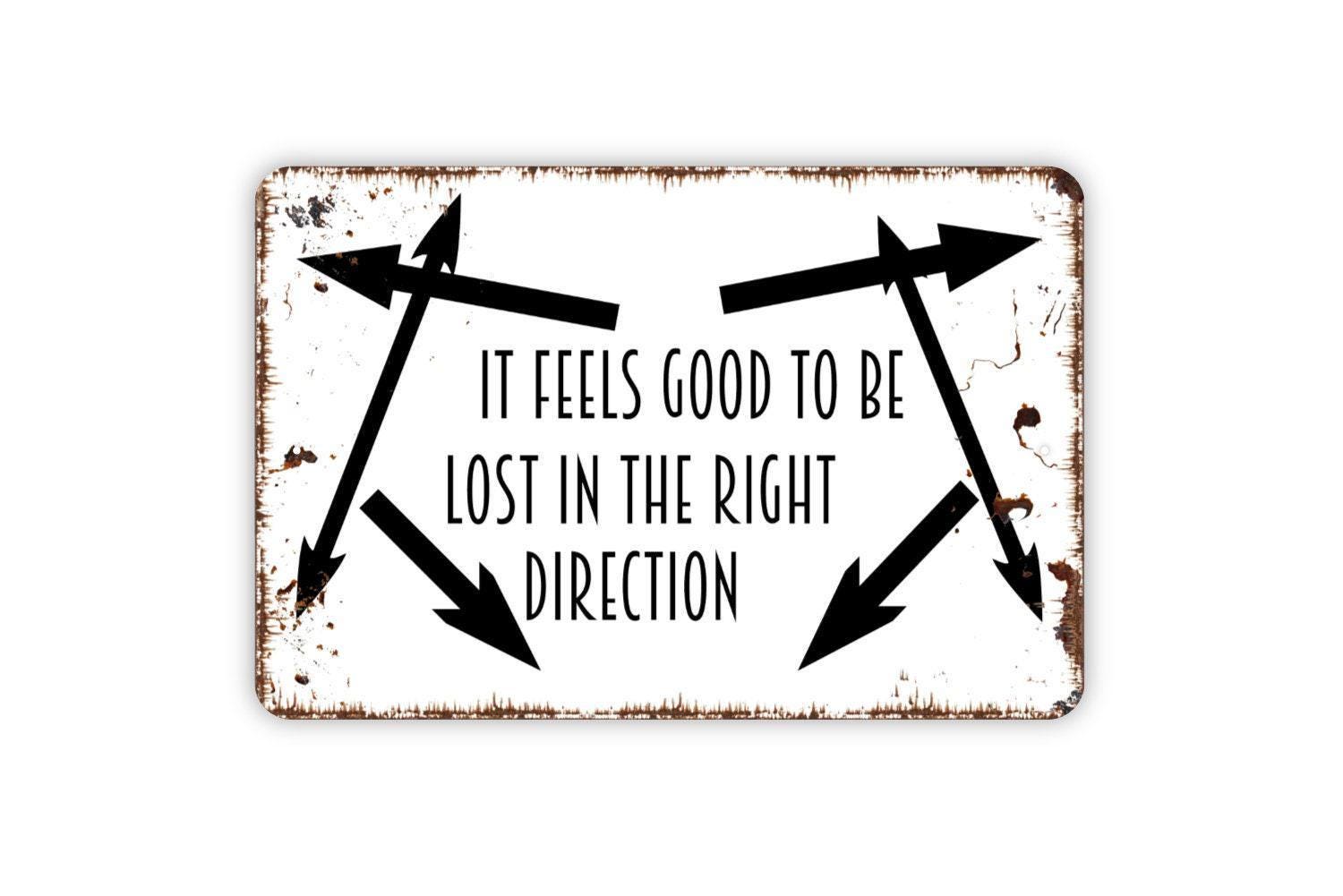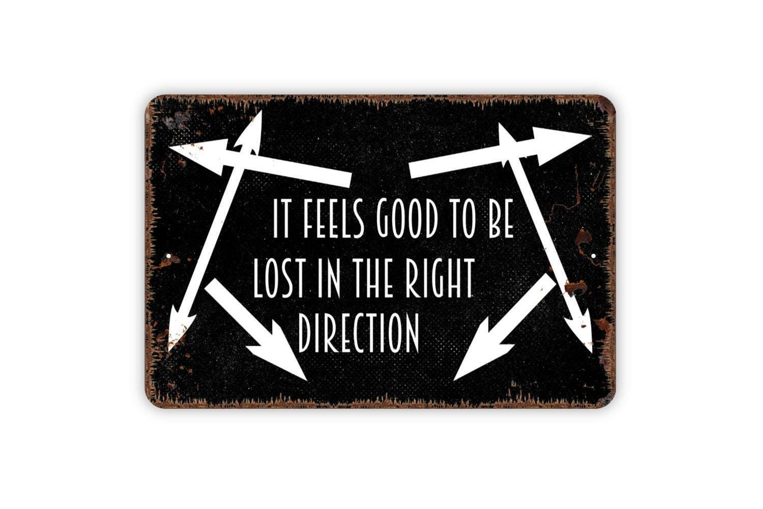 It Feels Good To Be Lost In The Right Direction Sign | For Home, Cabin, or Camper | Journey Adventure | Metal Sign or Vinyl Sticker Décor