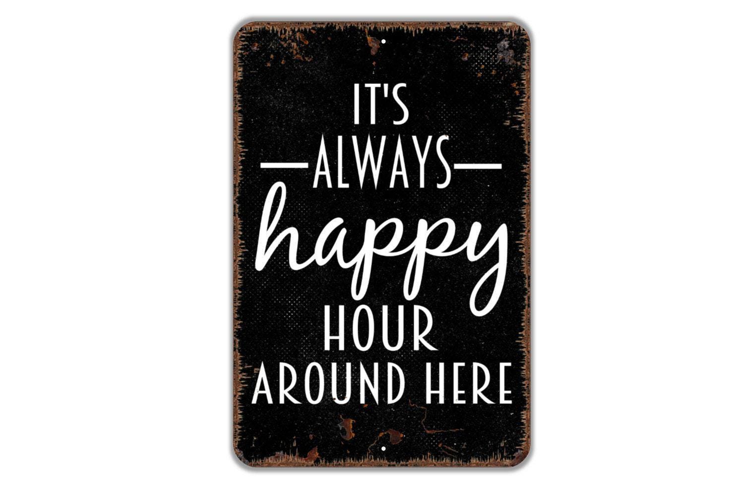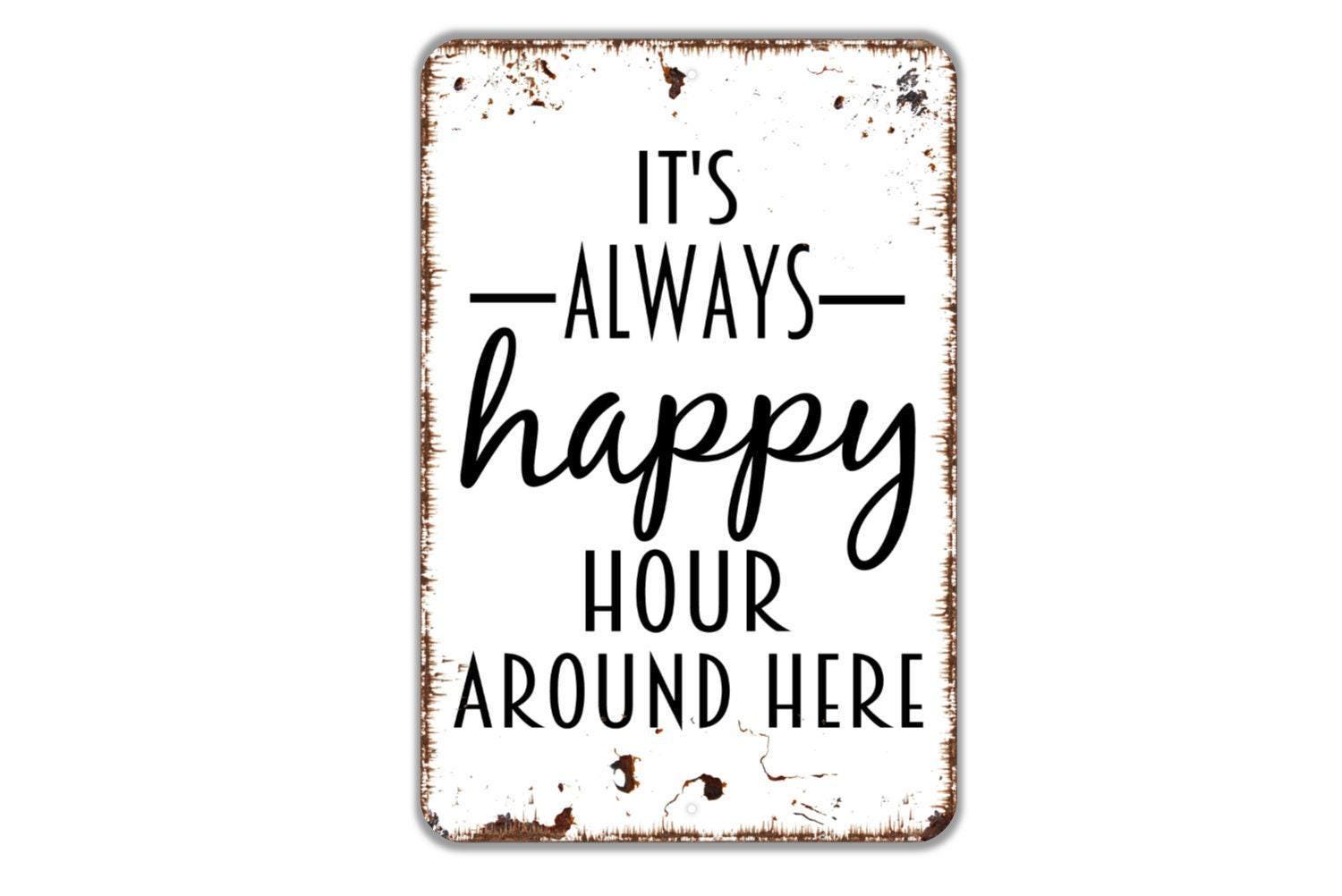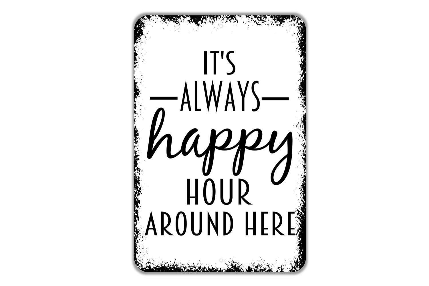It's Always Happy Hour Around Here Sign - Funny Drinking Alcohol Indoor Or Outdoor Modern Wall Art Metal Sign