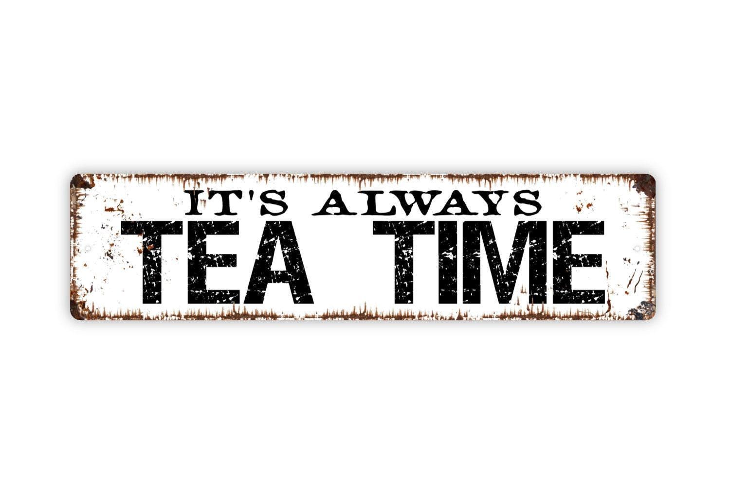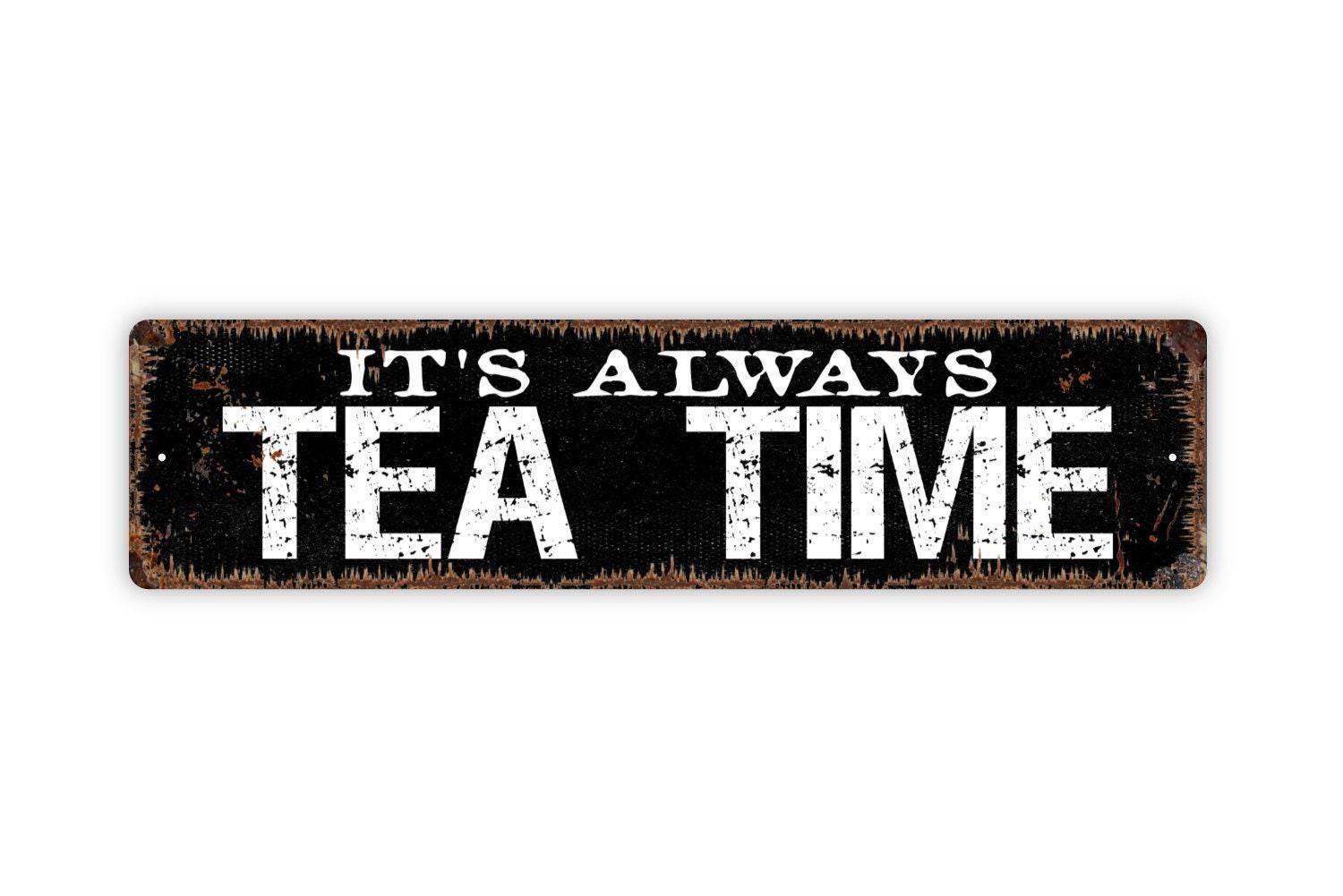It's Always Tea Time Sign - Vinyl Sticker Or Metal Street Sign or Door Name Plate Plaque