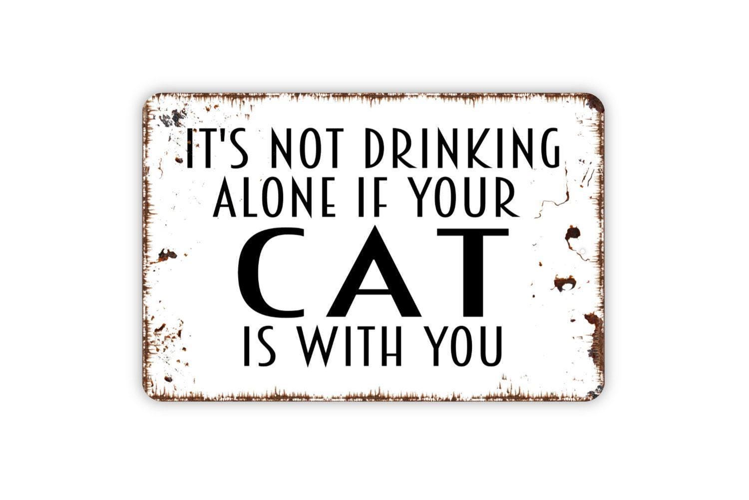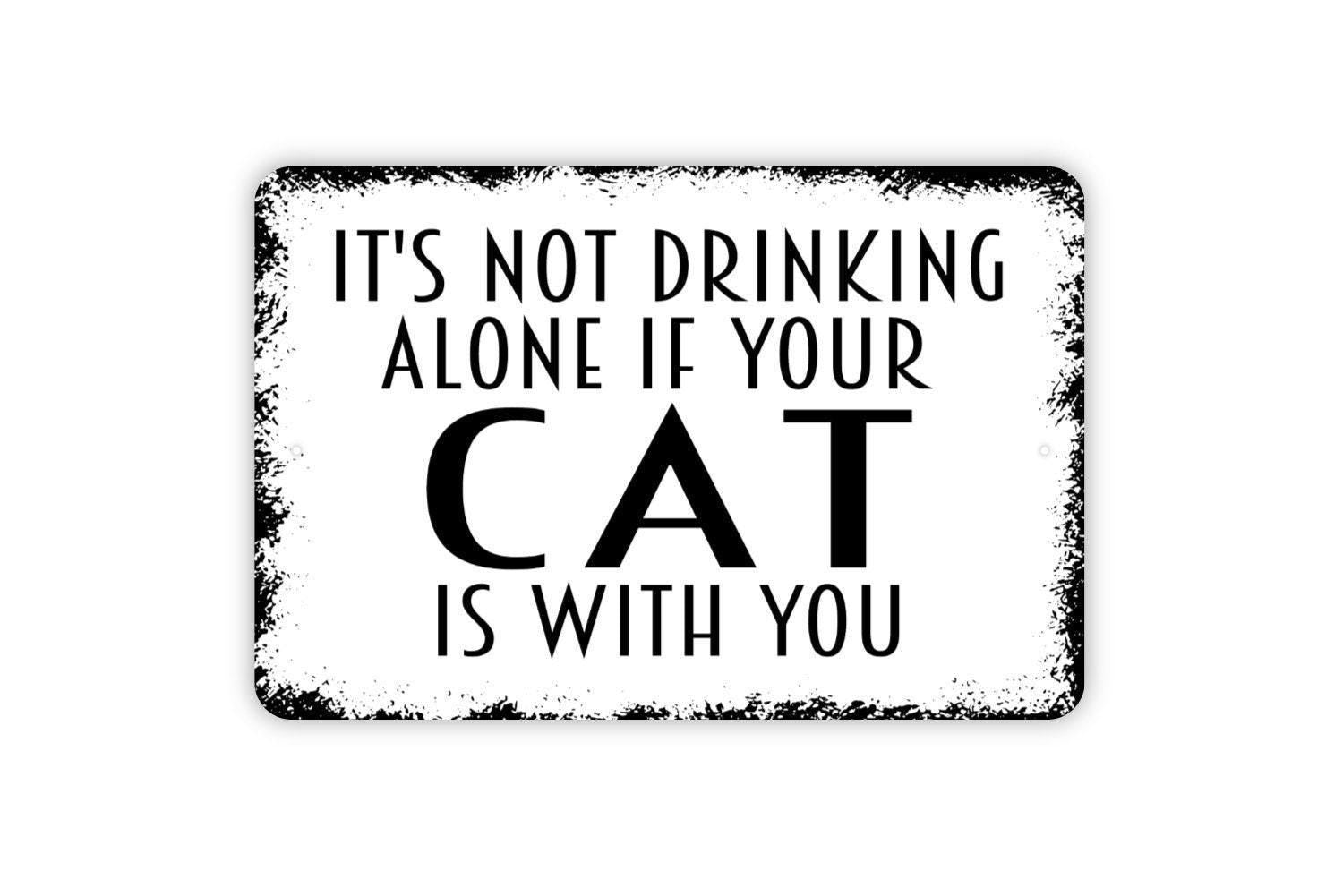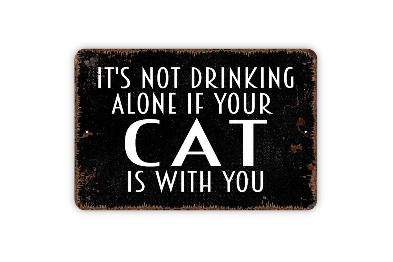 It's Not Drinking Alone If Your Cat Is With You Sign - Funny Bar Alcohol Metal Wall Art