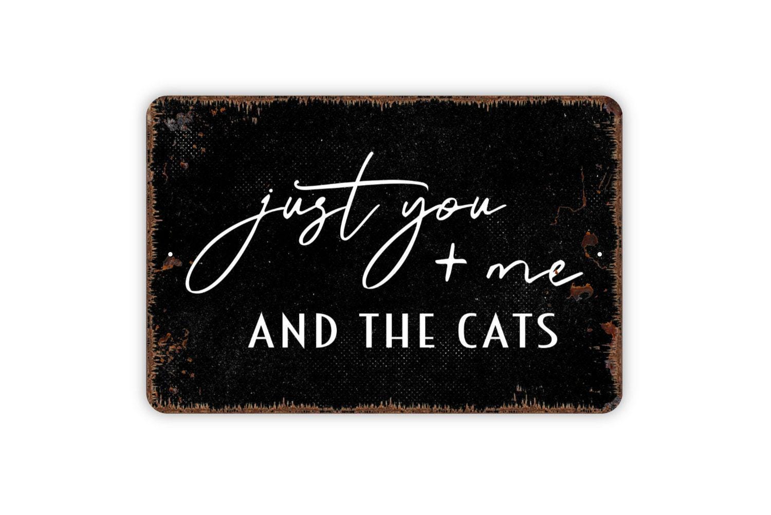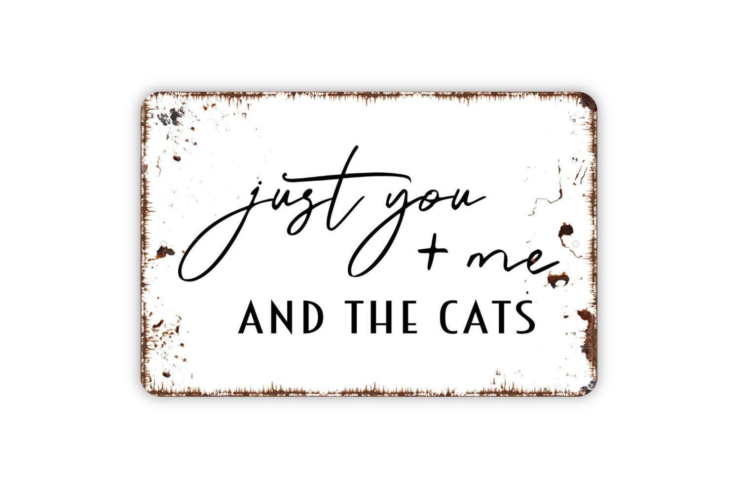 Just You and Me and the Cats Sign | Funny Cat Lover Metal Sign or Vinyl Sticker | Pet Home, Porch, or Wall Decor | Gift for Cat Owners