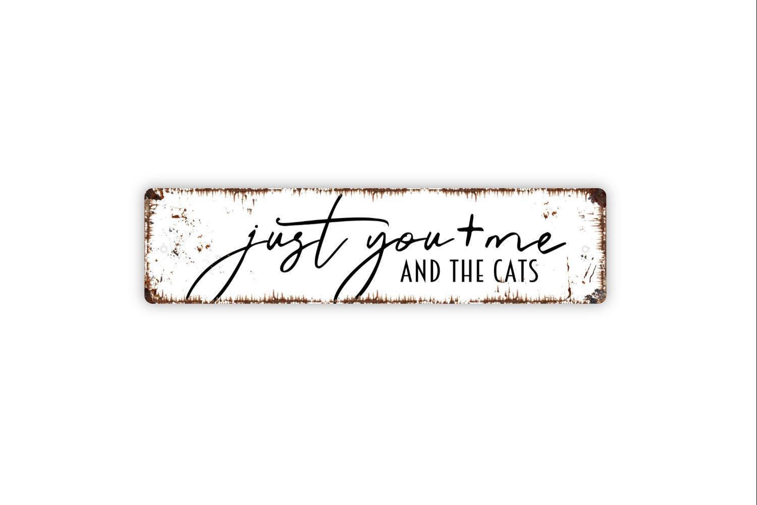 Just You And Me And The Cats Sign, Funny Kitty Kitten Cat Metal Sign, Farmhouse Style Decor, Rustic Street Sign or Door Name Plate Plaque