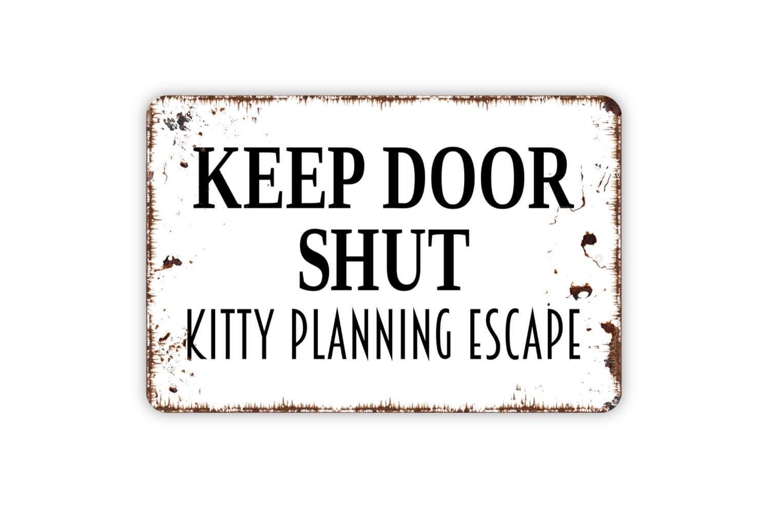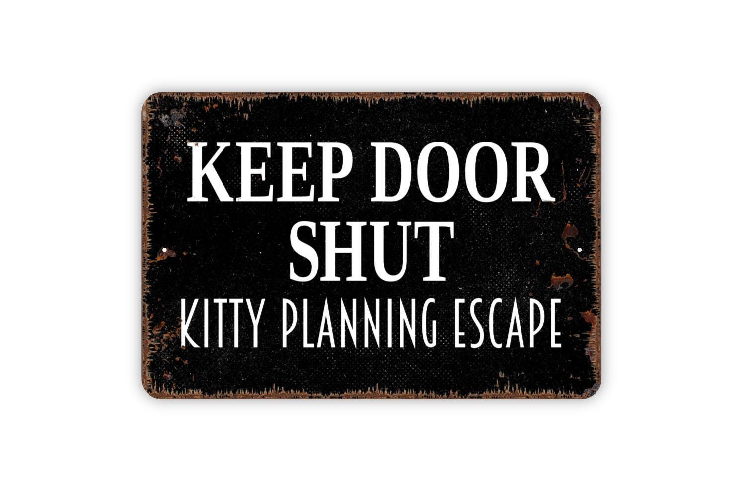 Keep Door Shut Kitty Planning Escape Sign – Funny Cat Lover Wall Decor – Pet Safety Door Reminder – Metal Sign or Vinyl Sticker