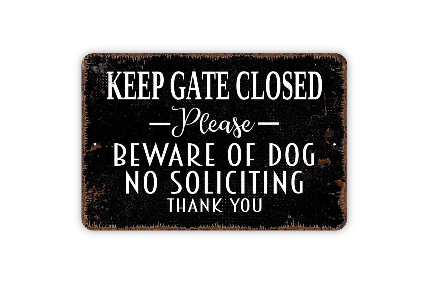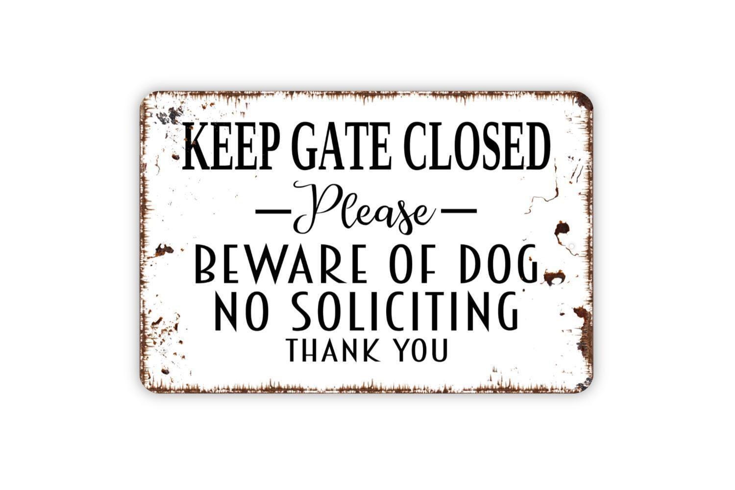 Keep Gate Closed Please Beware Of Dog No Soliciting Thank You Sign, Private Property Metal Sign, Indoor Or Outdoor Use