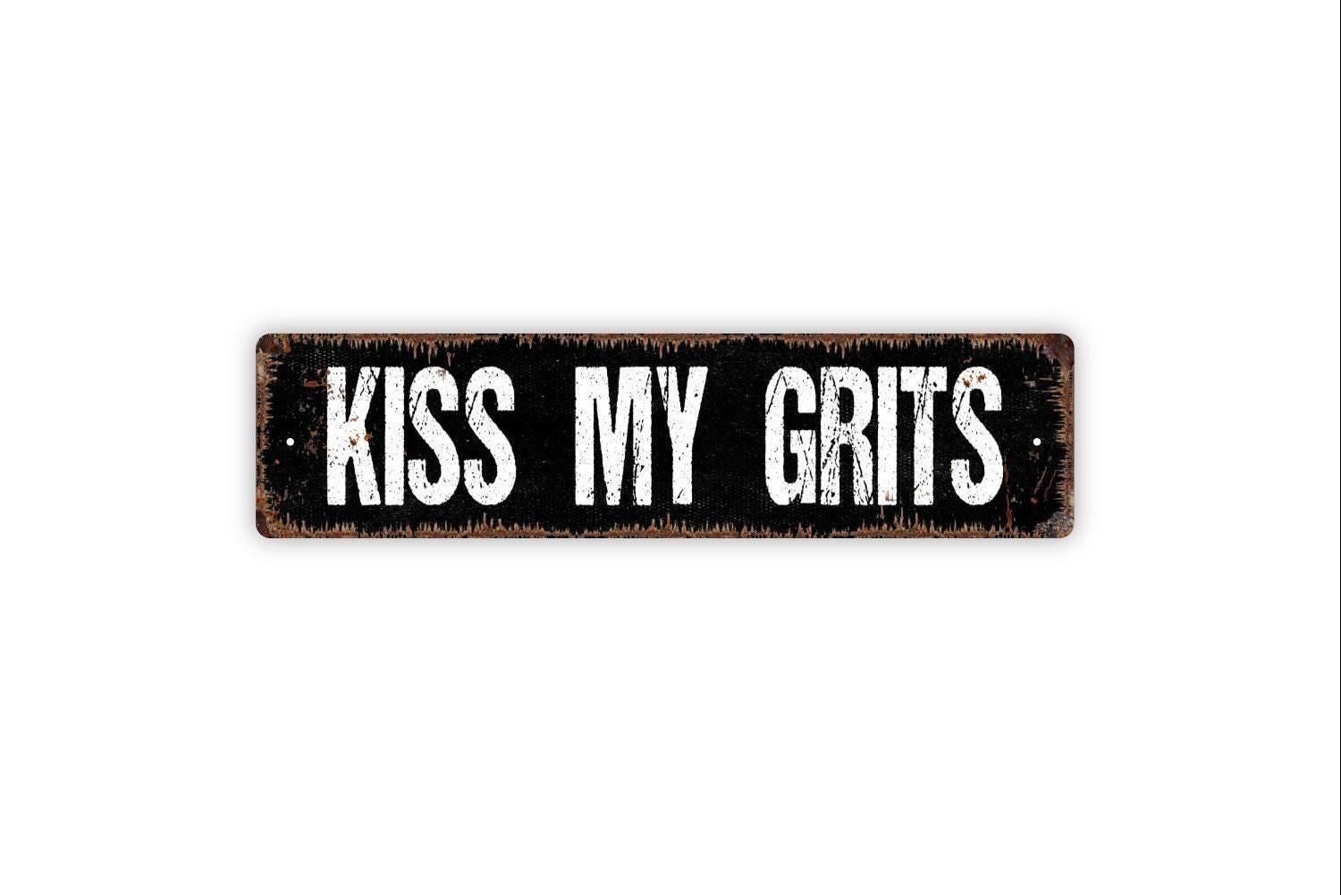 Kiss My Grits Sign | Funny Southern Kitchen Farmhouse Wall Decor | Metal Sign or Vinyl Sticker for Dining Room Cafe Restaurant