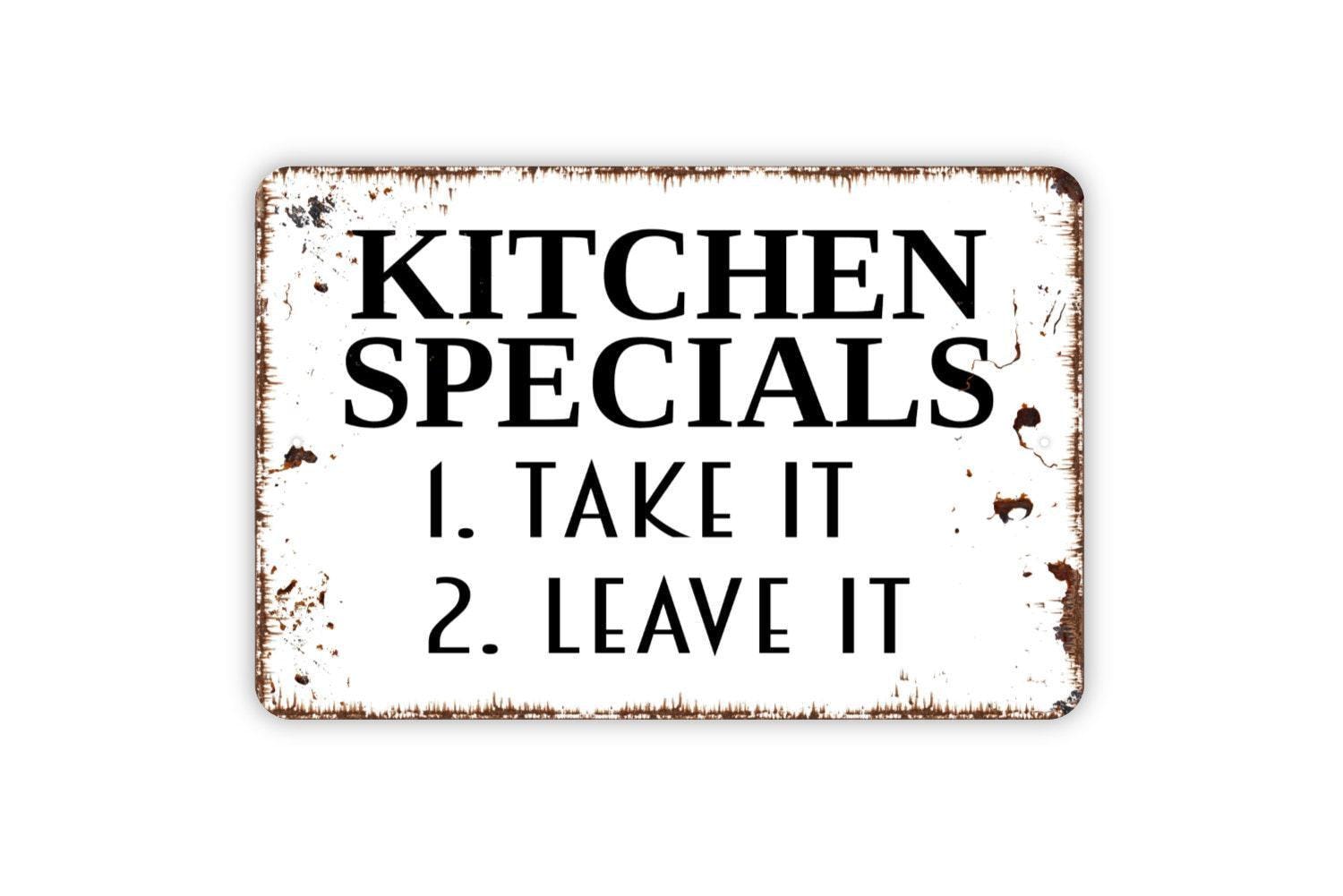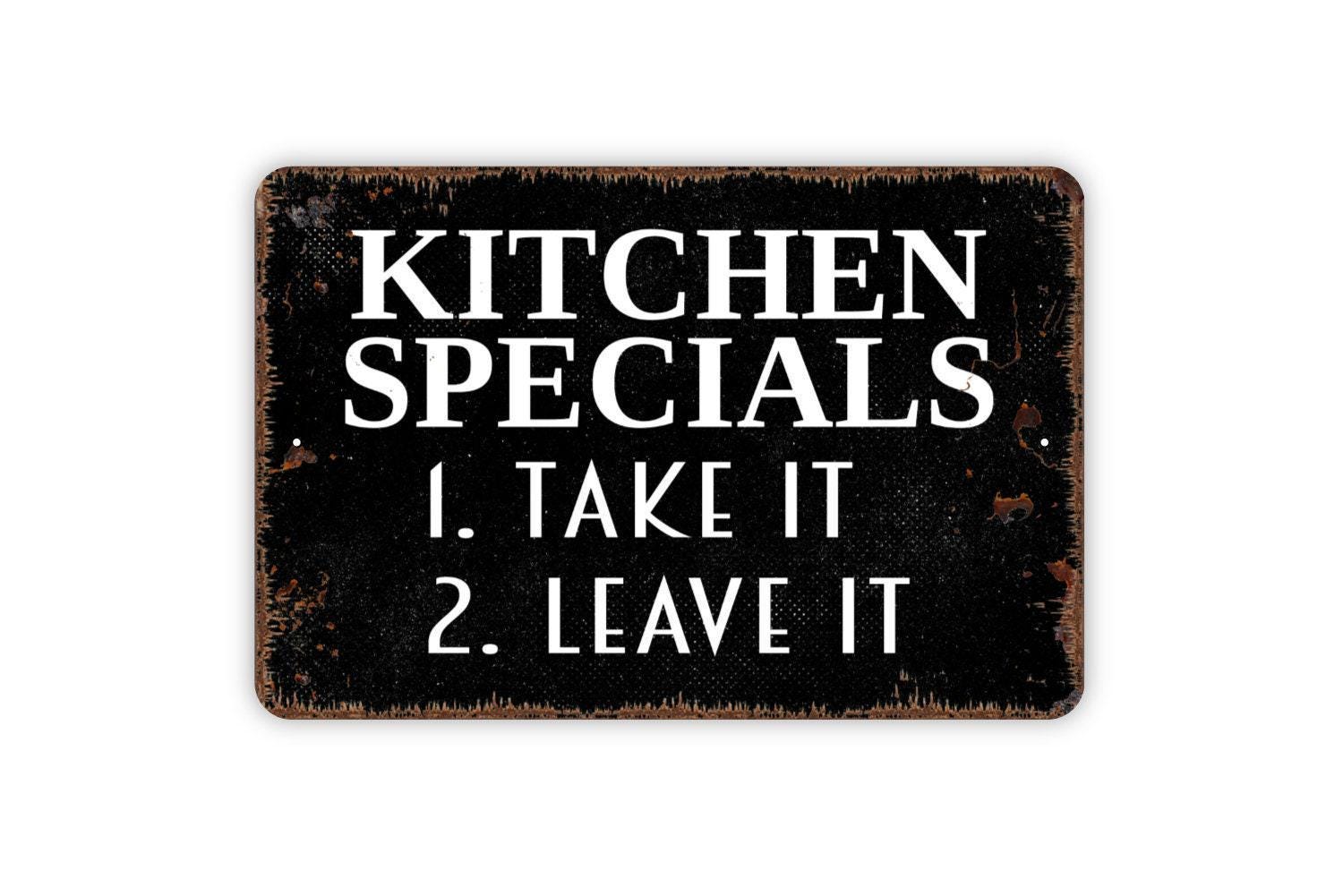 Kitchen Specials Take It Or Leave It Sign - Funny Metal Indoor or Outdoor Wall Art