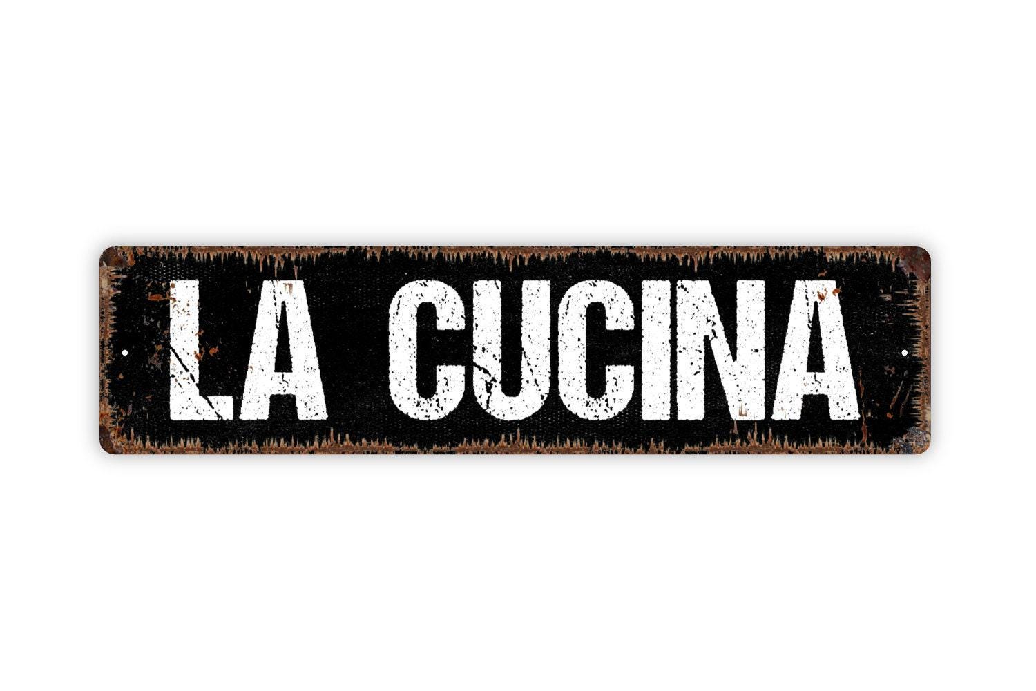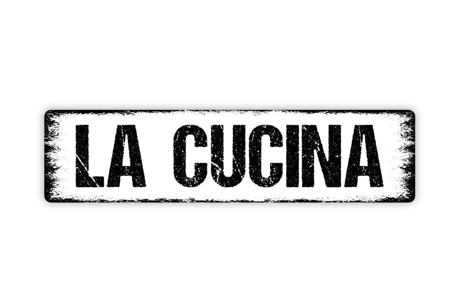 La Cucina Sign - Italian Cooking Chef Kitchen Pantry Vinyl Sticker Or Street Metal Sign or Door Name Plate Plaque