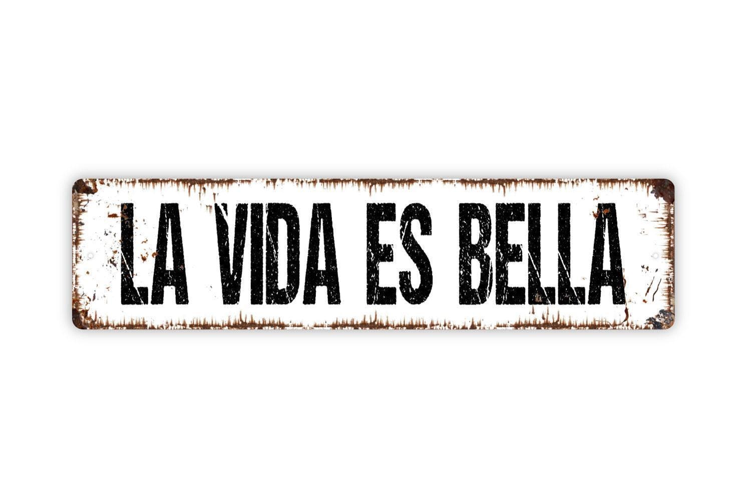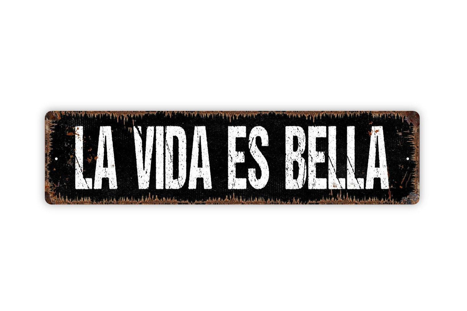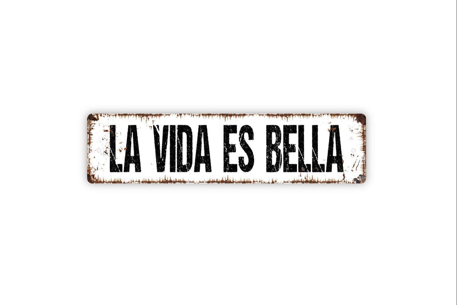 La Vida Es Bella Sign - Life Is Beautiful Life Is Good Italian Spanish Vinyl Sticker Or Street Metal Sign or Door Name Plate Plaque