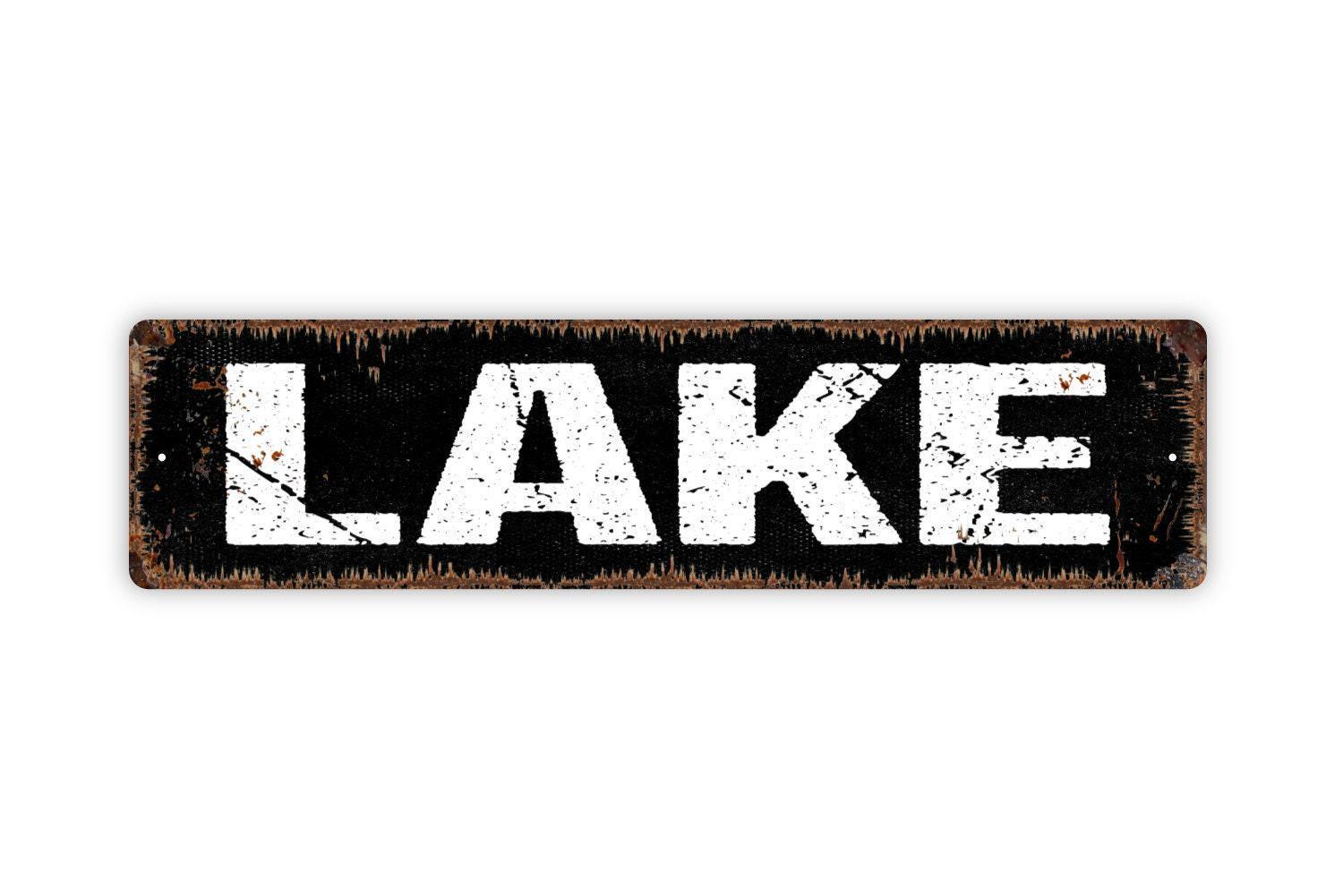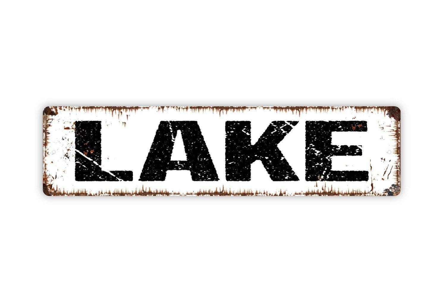 Lake Sign | Rustic Cabin Wall Decor | Farmhouse Lake House Sign | Custom Metal Sign or Vinyl Sticker | Lodge or Waterfront Wall Art