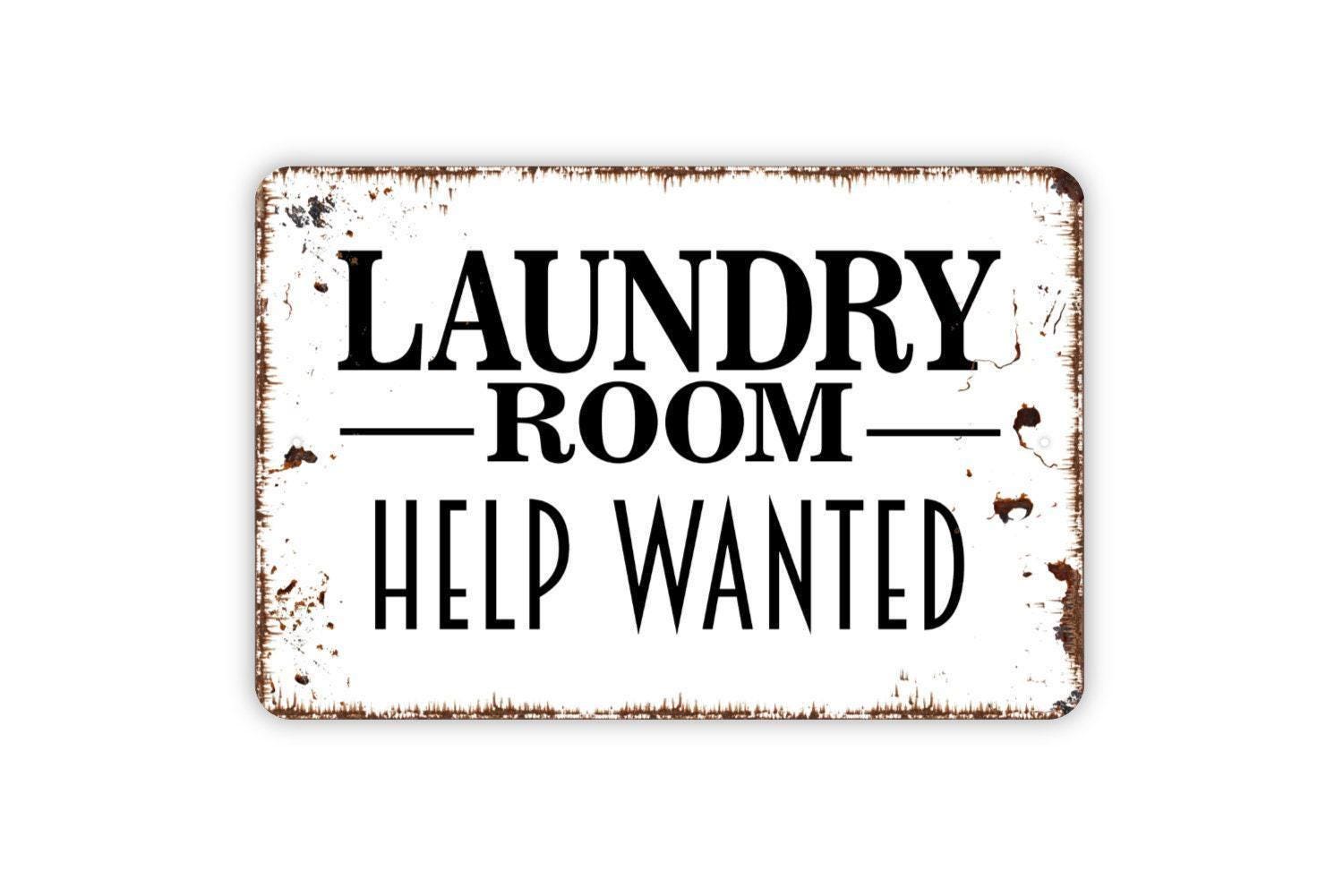 Laundry Room Help Wanted Sign - Metal Indoor or Outdoor Wall Art