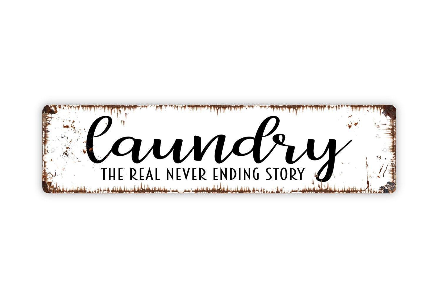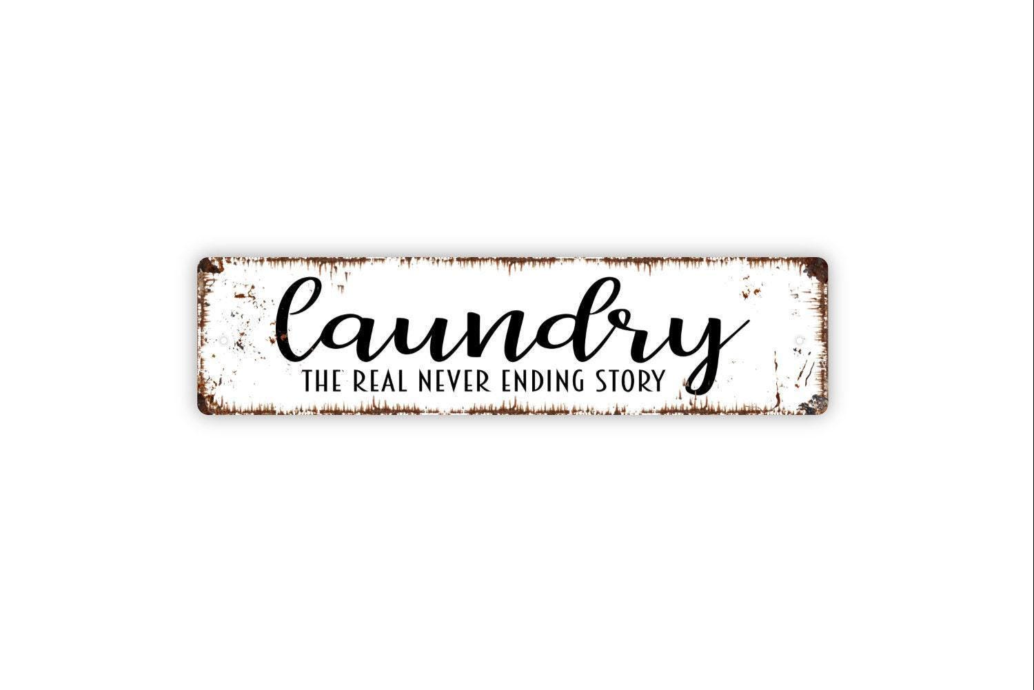 Laundry The Real Never Ending Story Sign - Funny Laundry Room Laundromat Vinyl Sticker Or Street Metal Sign or Door Name Plate Plaque
