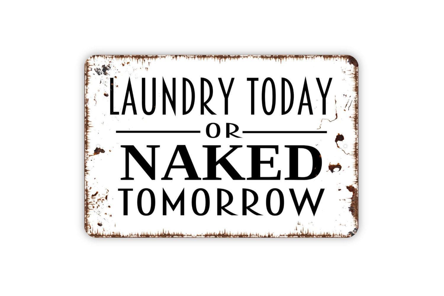 Laundry Today or Naked Tomorrow Sign - Funny Laundry Room Metal Wall Art