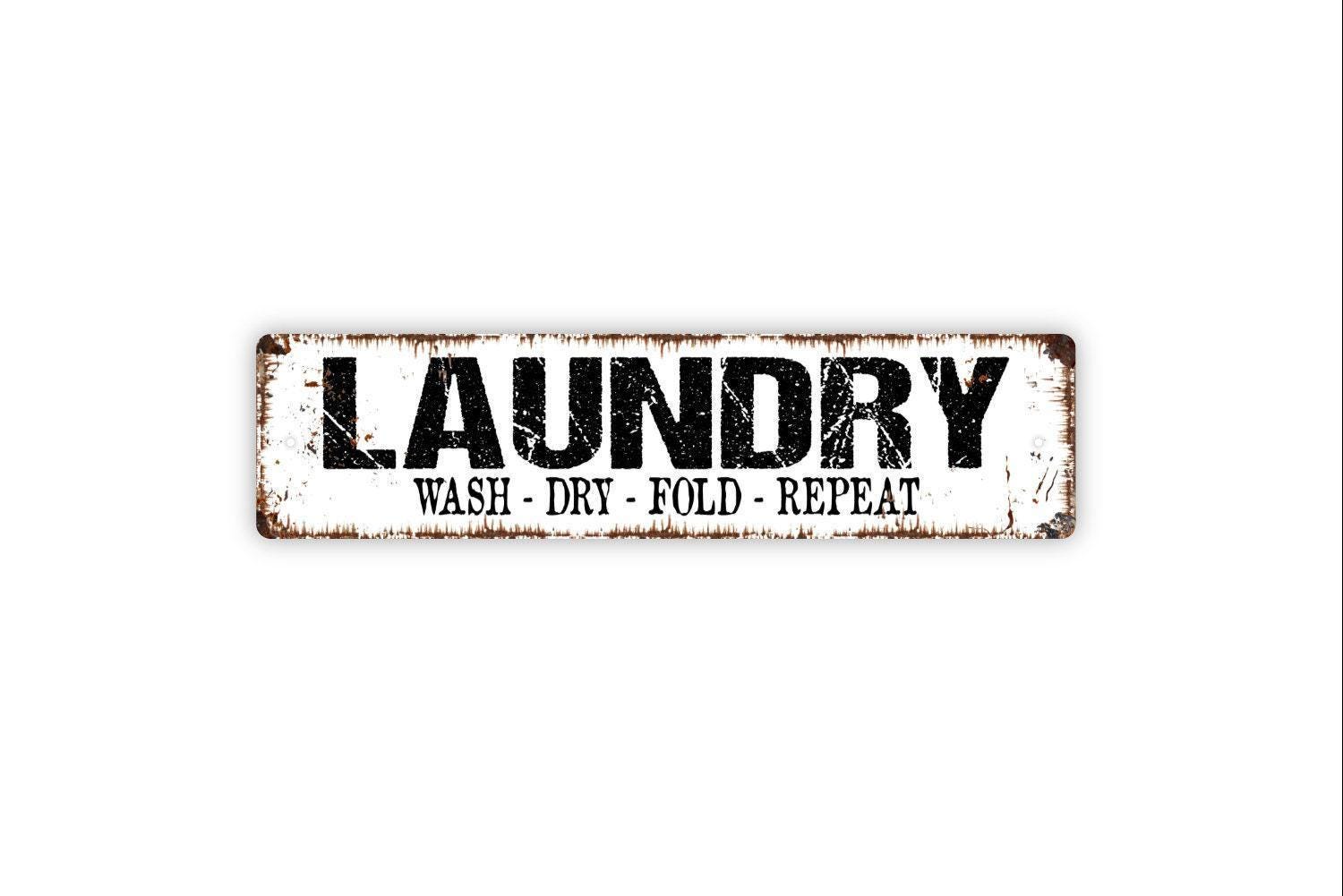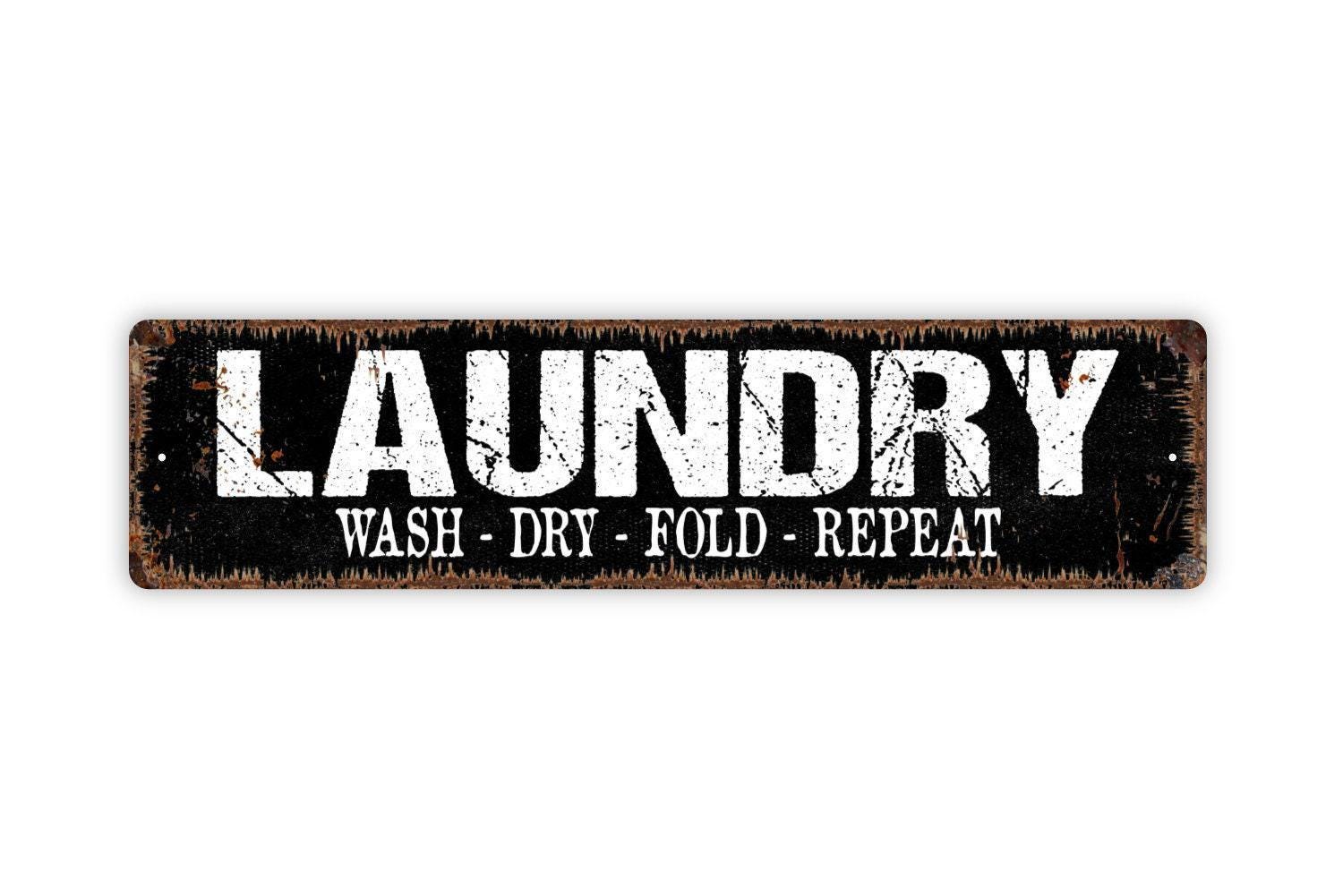 Laundry Wash Dry Fold Repeat Sign - Laundry Room Laundromat Dirty Clothes Clean Rustic Street Metal Sign or Door Name Plate Plaque