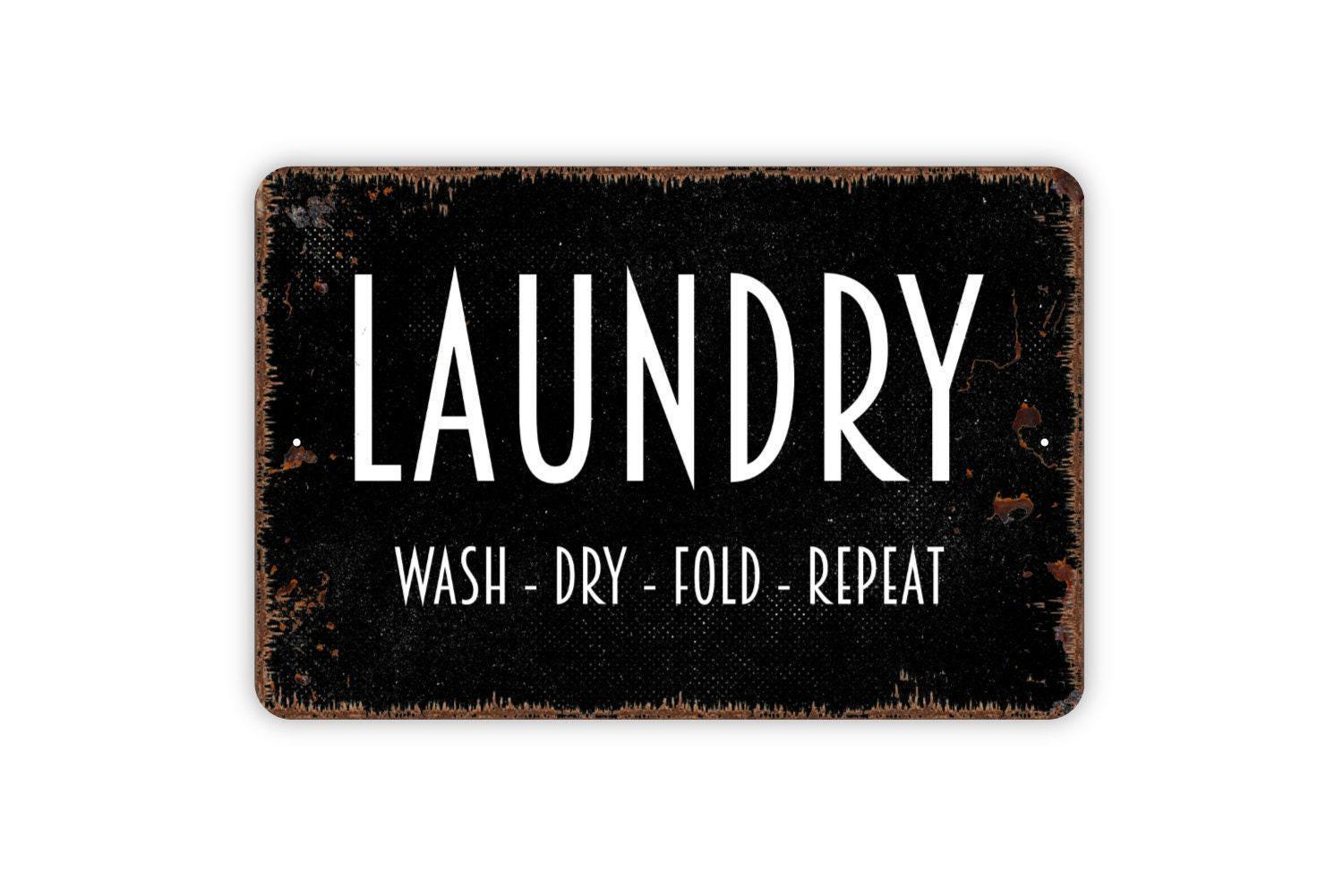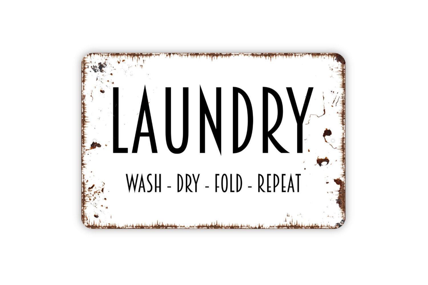 Laundry Wash Dry Fold Repeat Sign - Laundry Room Metal Wall Art - Indoor or Outdoor