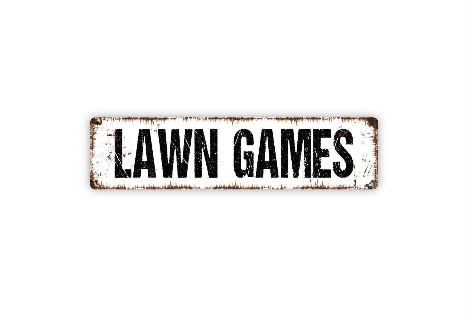 Lawn Games Sign - Vinyl Sticker Or Street Metal Sign or Door Name Plate Plaque