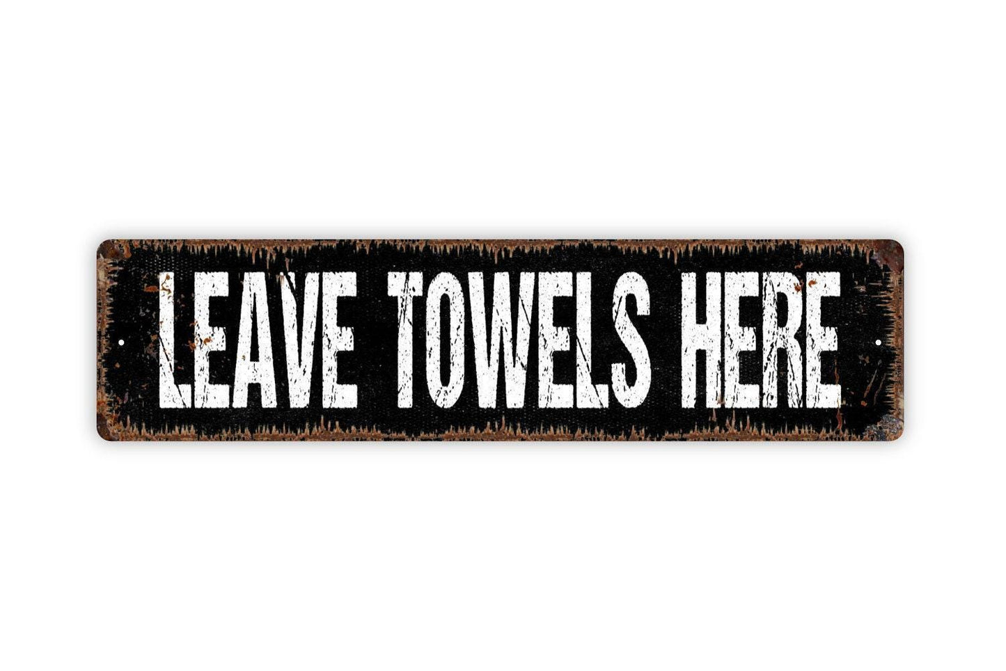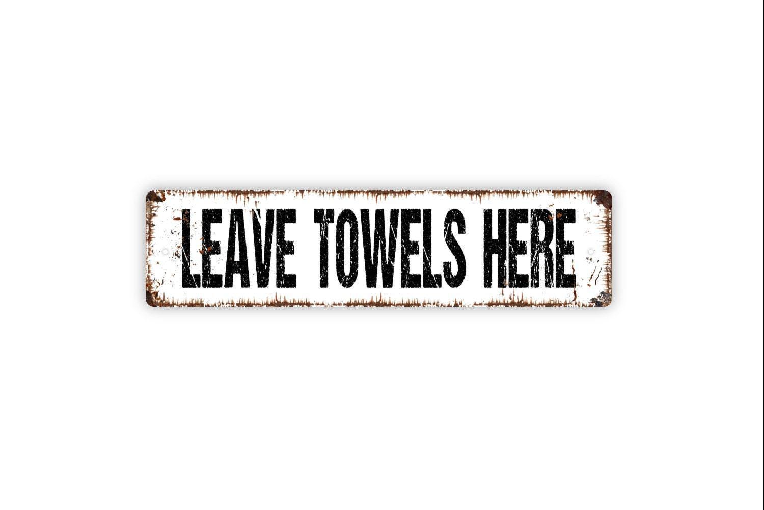 Leave Towels Here Sign - Pool Bathroom Guest Bath Showers Beach Towels Vinyl Sticker Or Street Metal Sign or Door Name Plate Plaque