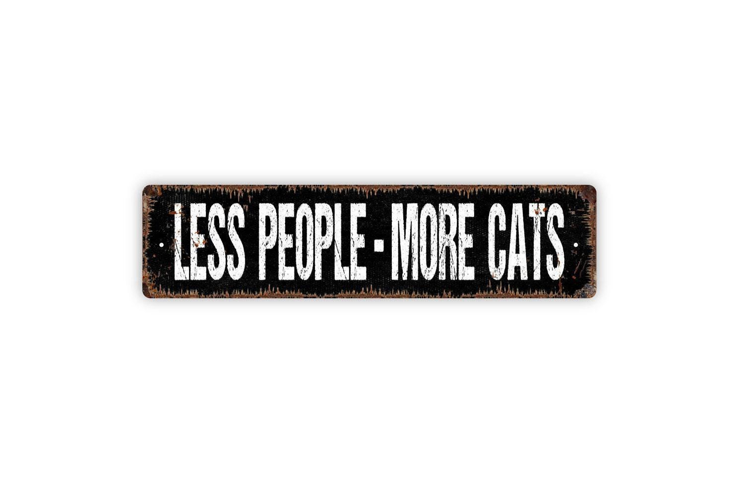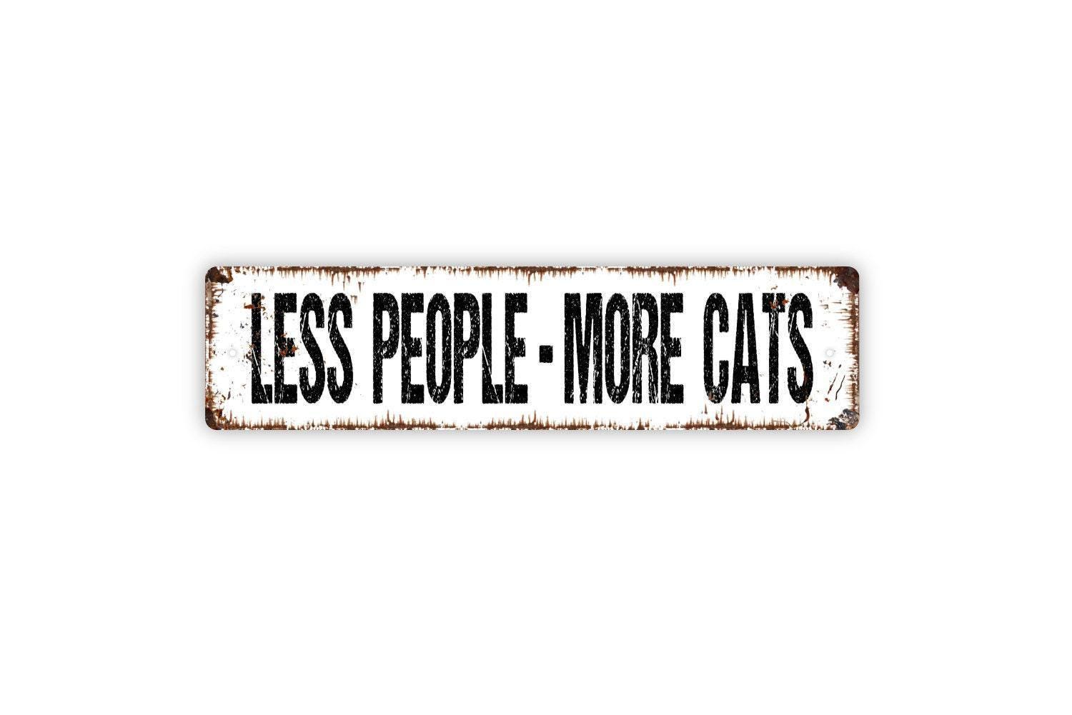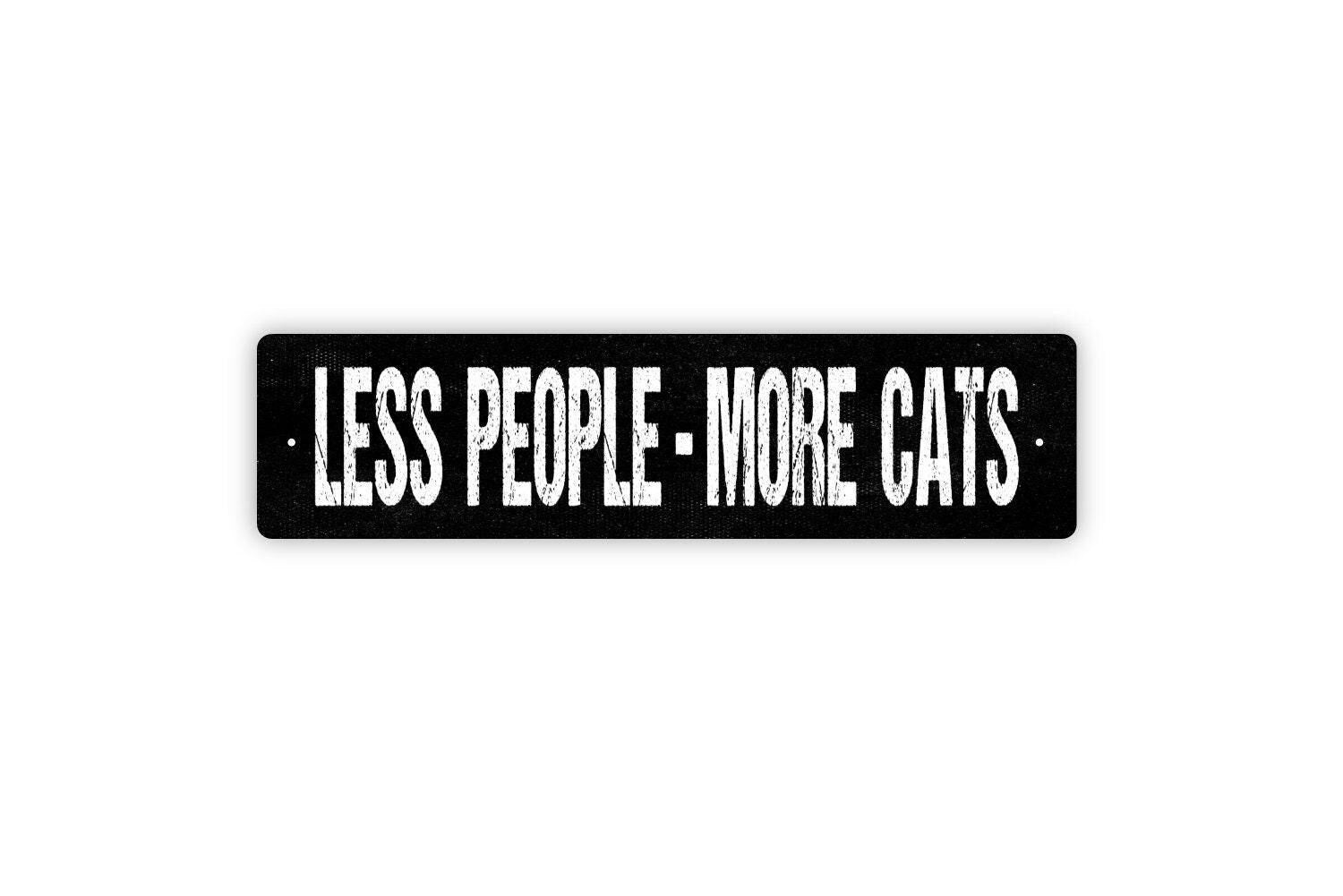 Less People More Cats Sign - Funny Welcome To Our Home Cat Kitten Kitty Feline Vinyl Sticker Or Street Metal Sign or Door Name Plate Plaque