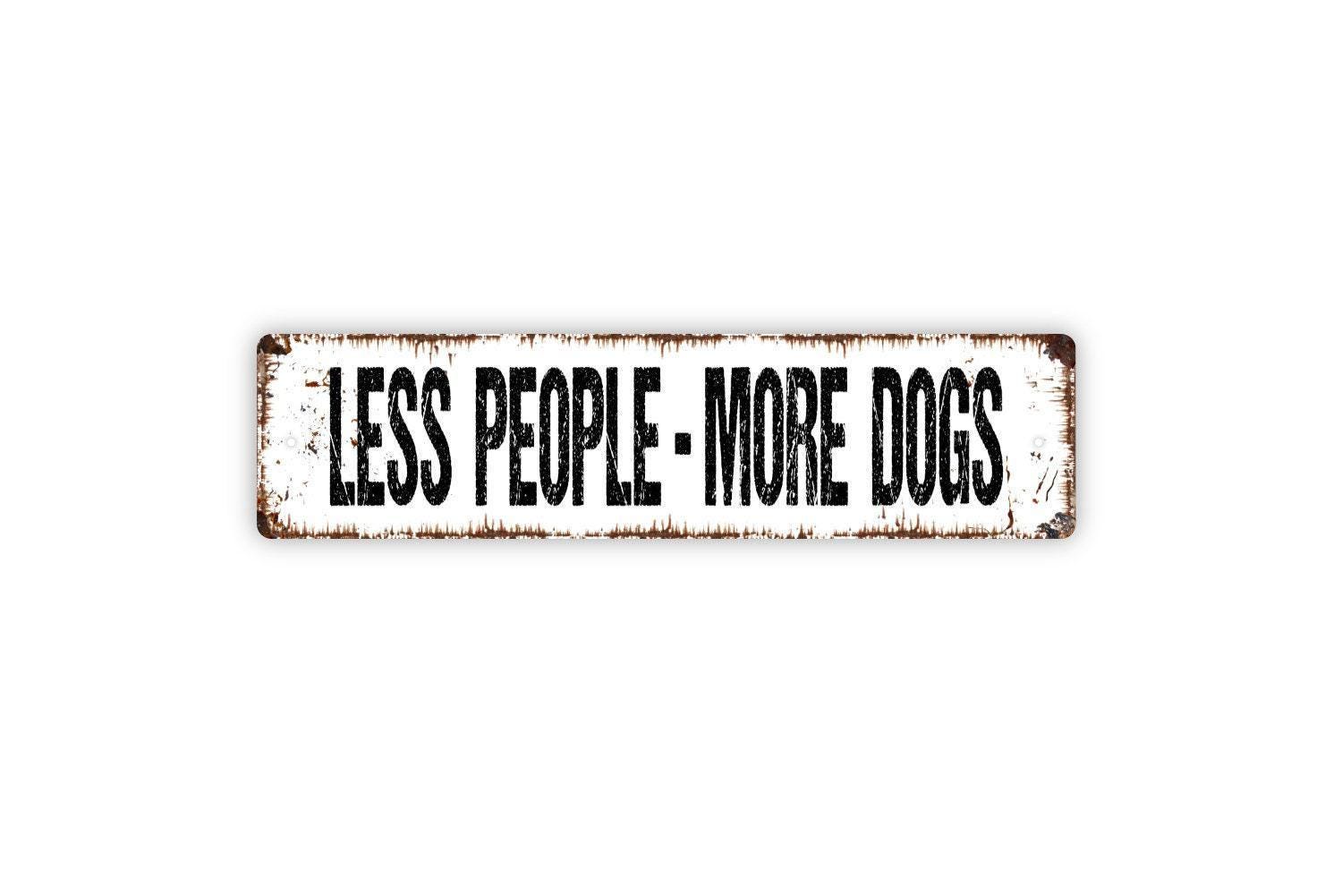 Less People More Dogs Sign - Funny Dog Puppy Pup K9 Vinyl Sticker Or Metal Street Sign or Door Name Plate Plaque