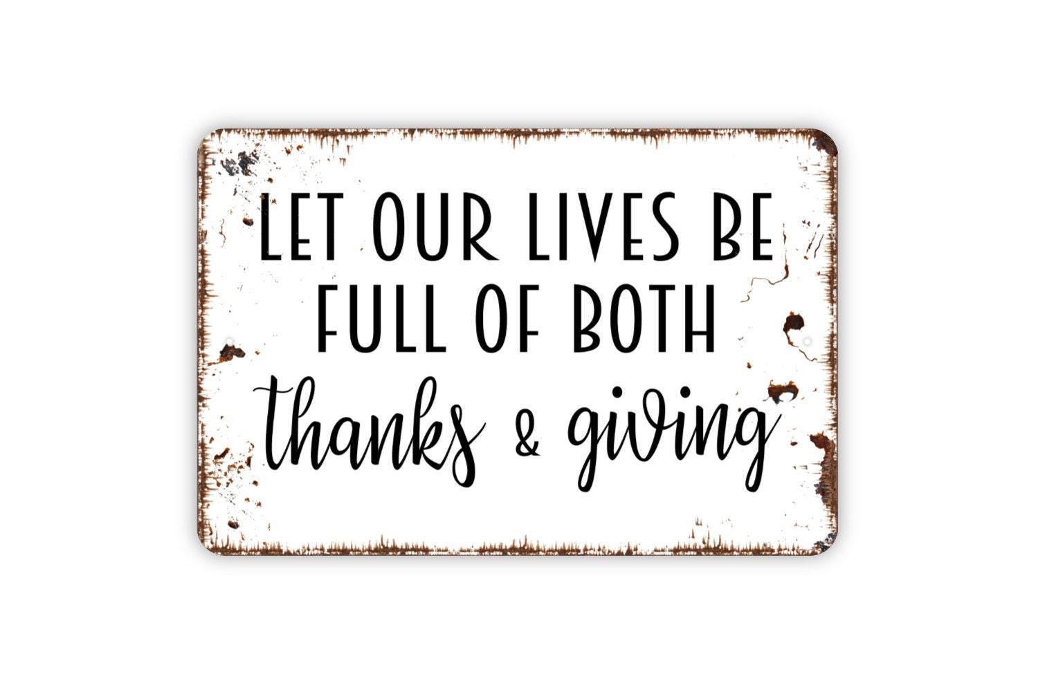 Let Our Lives Be Full Of Thanks and Giving Sign - Kitchen Metal Indoor or Outdoor Wall Art