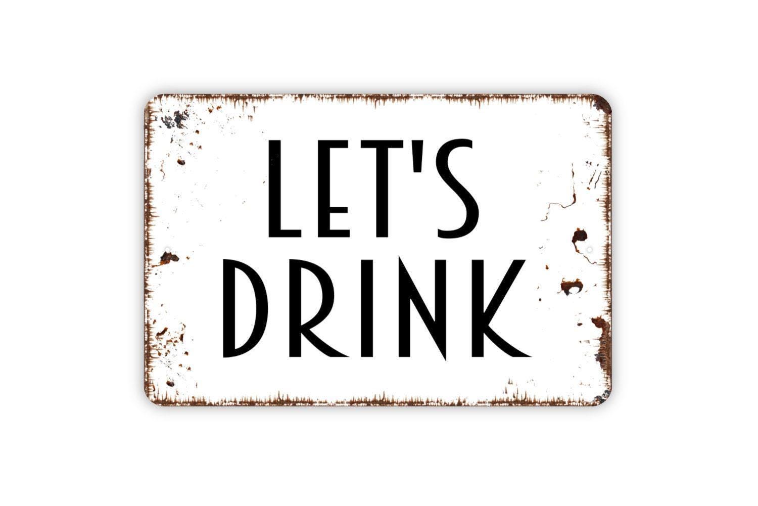 Let’s Drink Sign | Funny Bar Drinking Quote Decor | Metal Sign or Vinyl Sticker for Home Kitchen Patio Pub Party