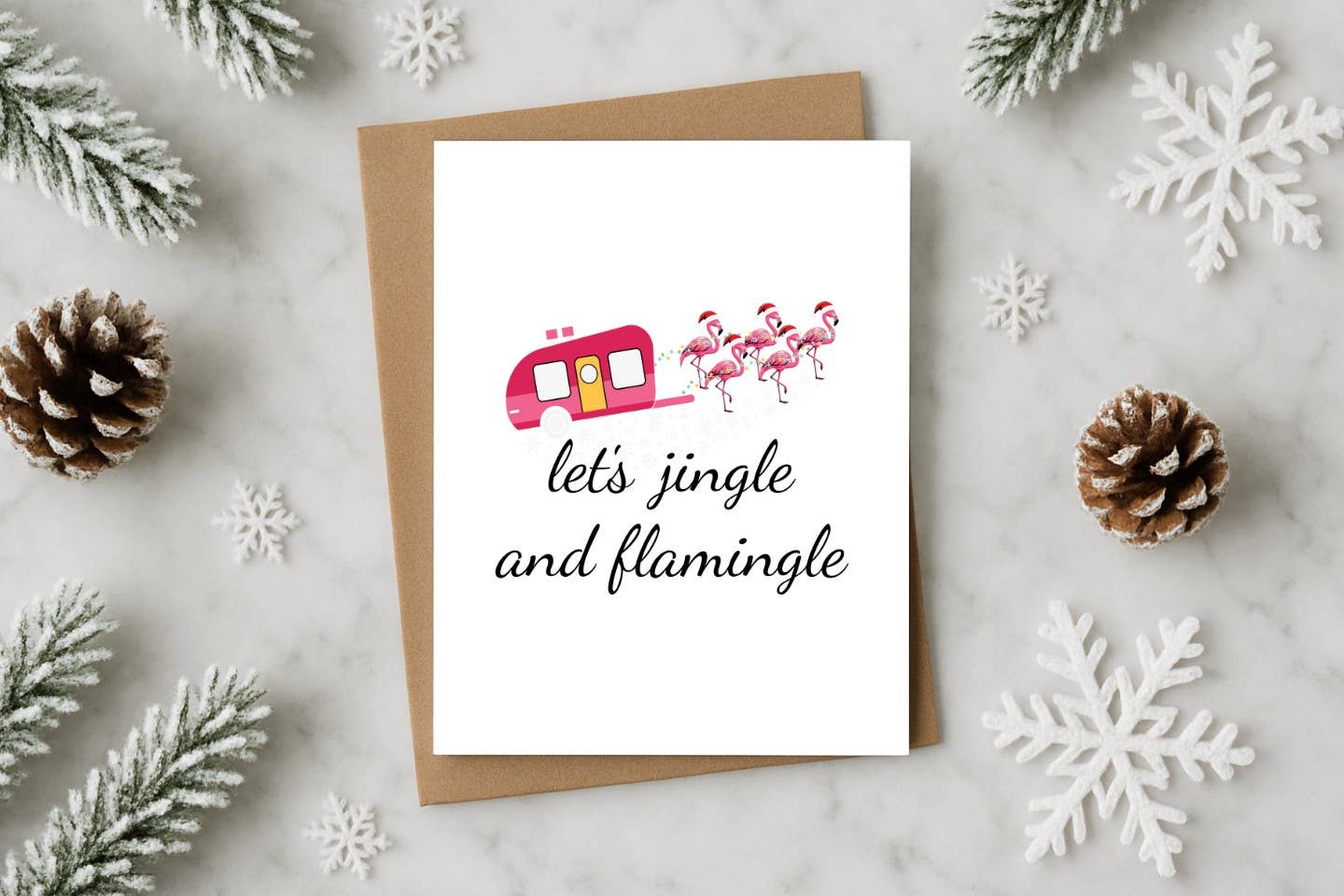 Let’s Jingle and Flamingle Funny Christmas Card with Flaming