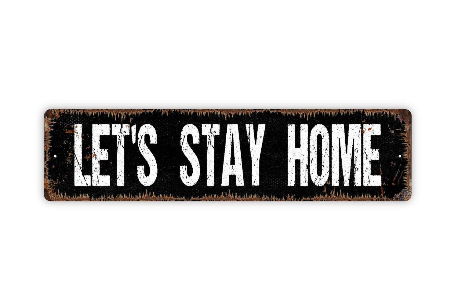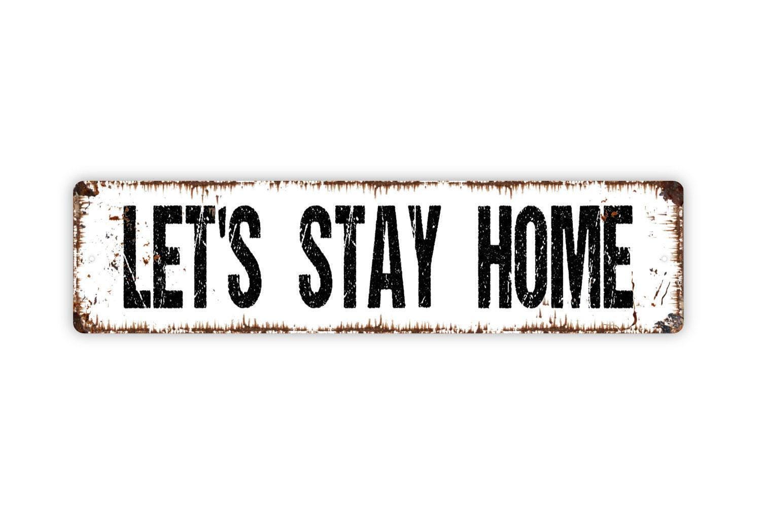 Let's Stay Home Sign Farmhouse Wall Decor | Cozy Bedroom or Living Room Sign | Metal Wall Art or Vinyl Sticker
