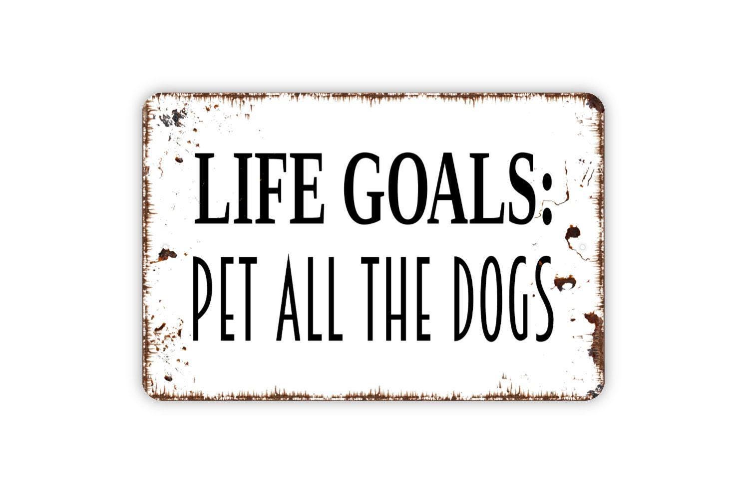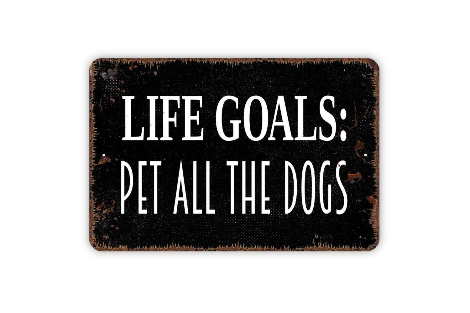 Life Goals: Pet All The Dogs Sign - Dog Pup Puppy Love Metal Indoor or Outdoor Wall Art