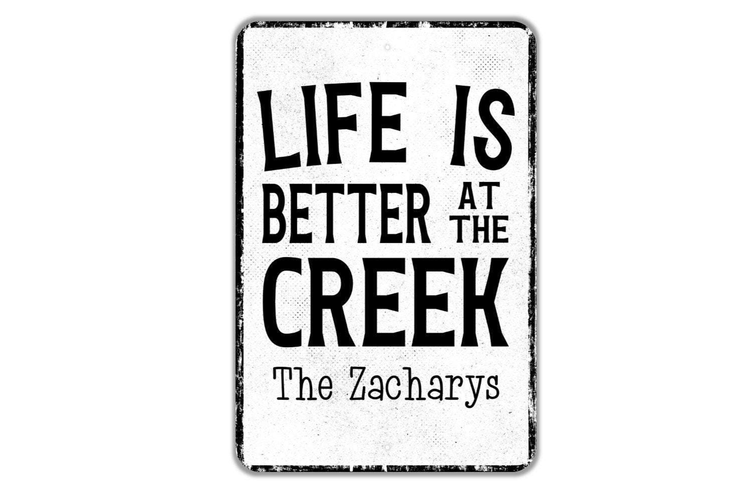 Life Is Better At The Creek Personalized Sign Custom Metal Wall Art or Vinyl Sticker for Lake House, Cabin, River Retreat, Rustic Decor