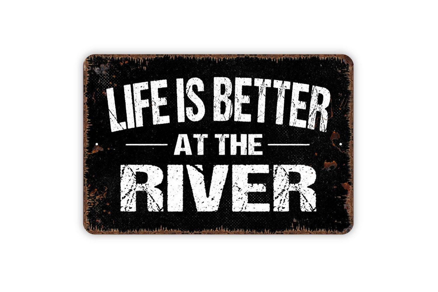 Life Is Better At The River Sign – Rustic Cabin Lake House Lodge Decor – Outdoor Patio Porch Wall Art – Metal Sign or Vinyl Sticker