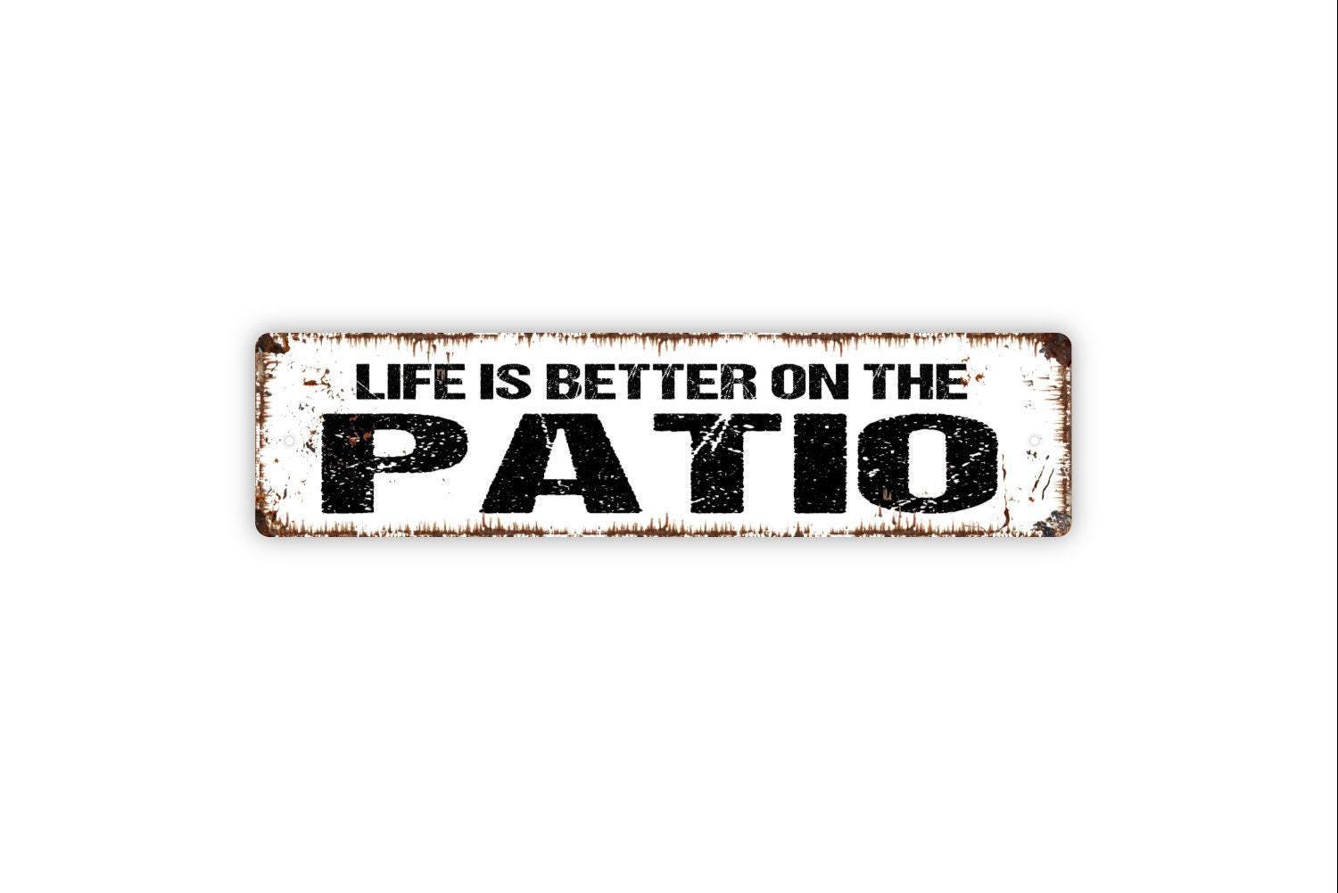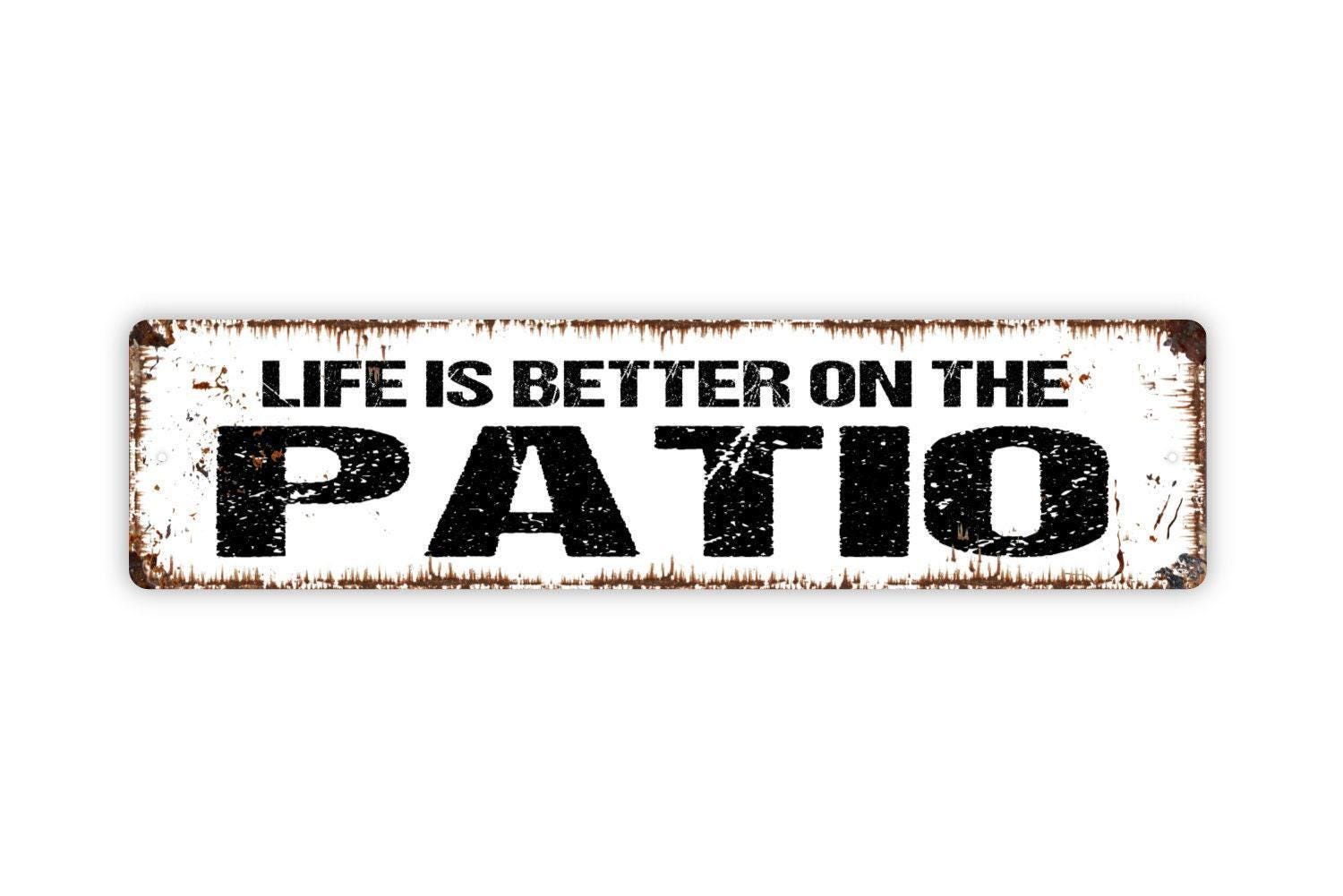 Life Is Better On The Patio Sign - Vinyl Sticker Or Metal Street Sign or Door Name Plate Plaque