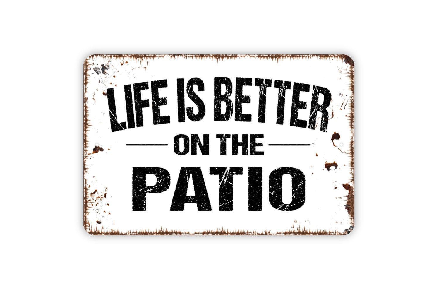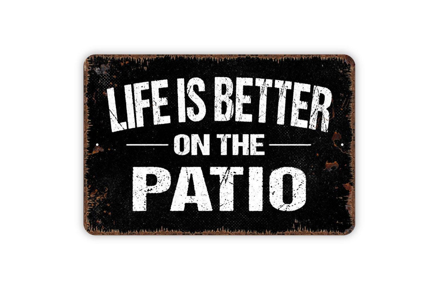 Life Is Better On The Patio Sign - Welcome Metal Wall Art - Indoor or Outdoor
