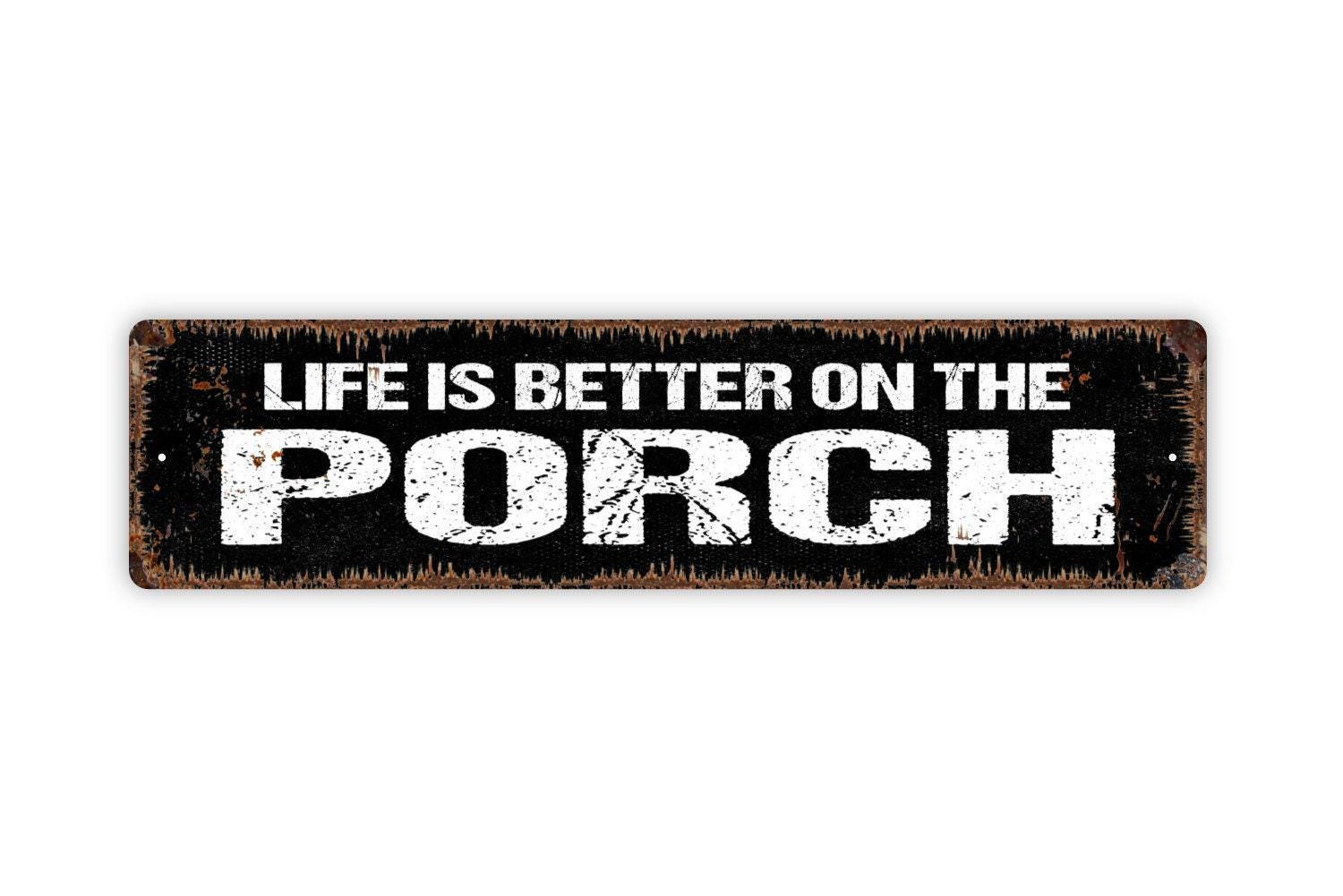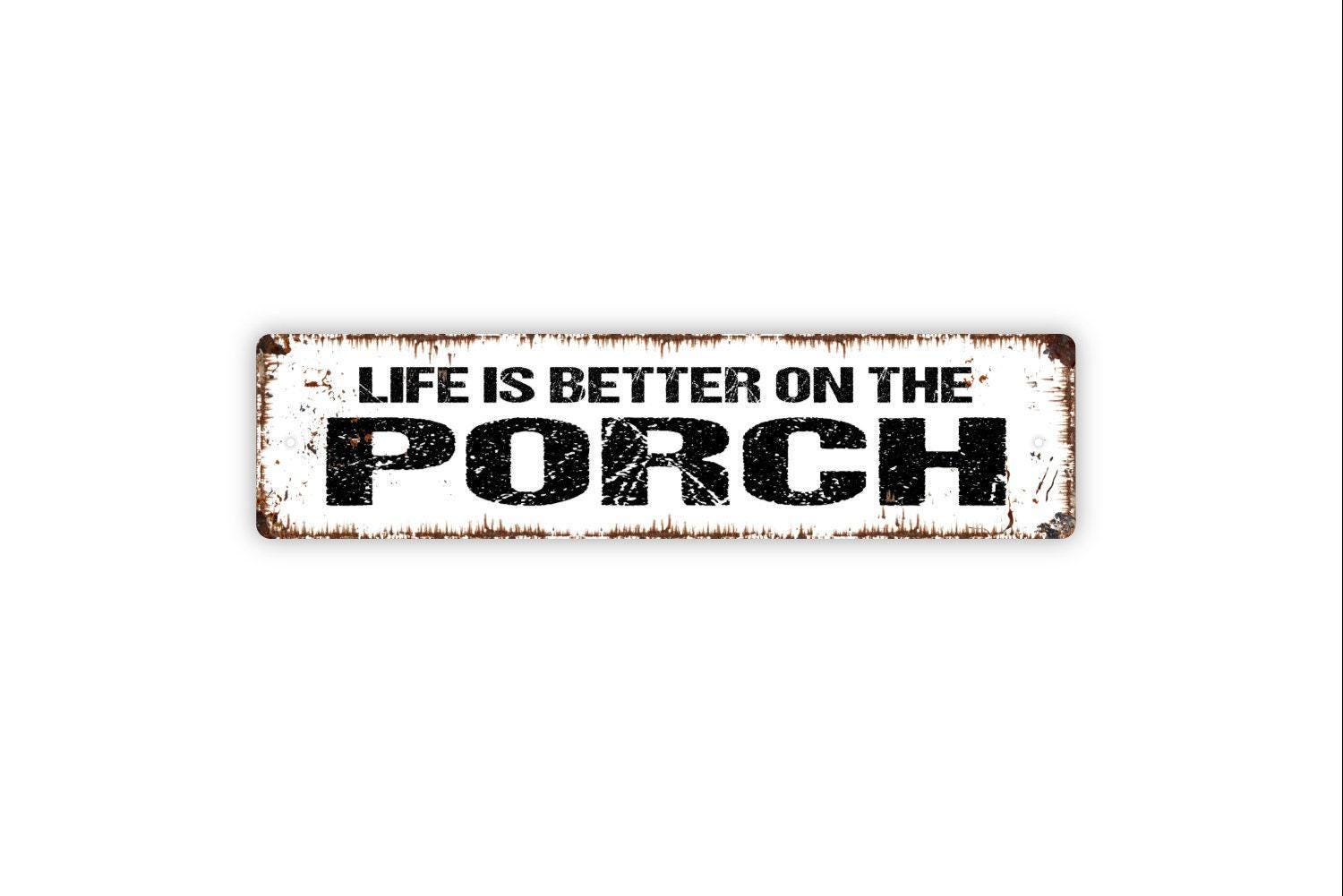 Life Is Better On The Porch Sign – Rustic Farmhouse Front Porch Wall Decor – Country Home Patio Garden Sign – Metal Sign or Sticker
