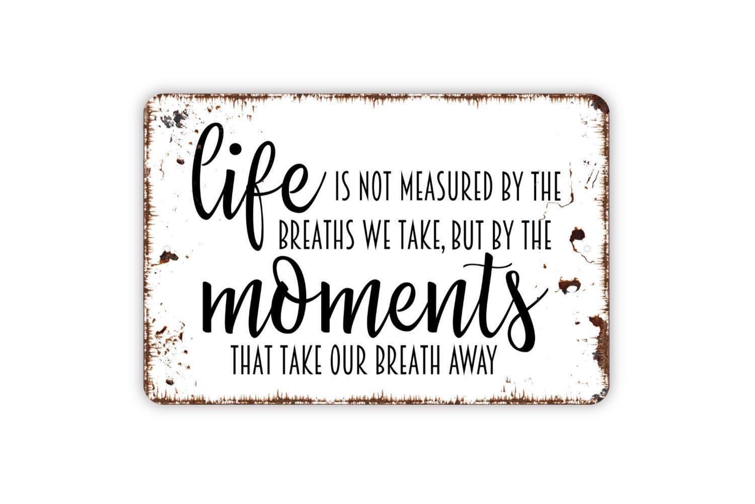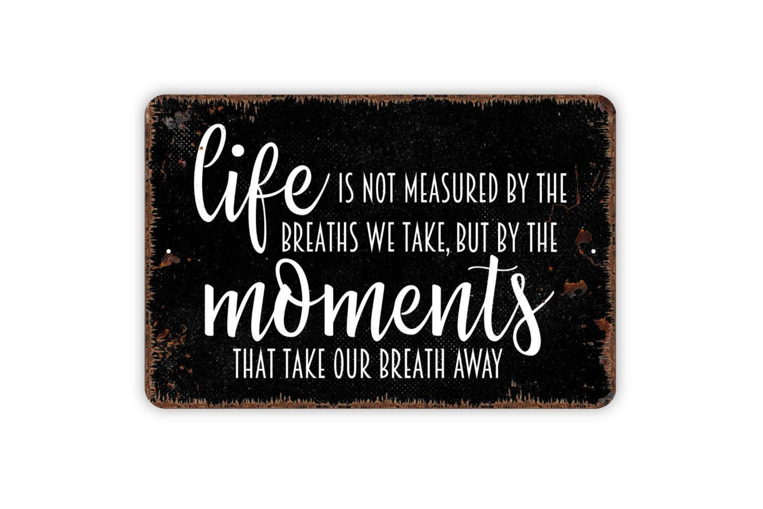 Life Is Not Measured By The Breaths We Take But By The Moments That Take Our Breath Away Sign | Inspirational Wall Decor | Rustic Home Sign