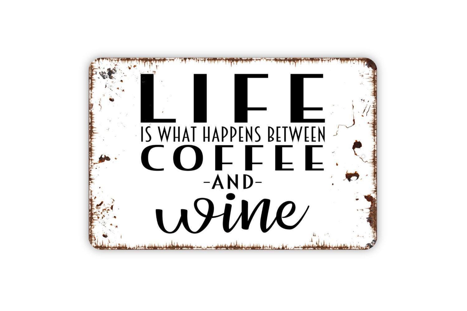 Life Is What Happens Between Coffee And Wine Sign, Funny Metal Sign, Farmhouse Contemporary Modern Wall Metal Sign