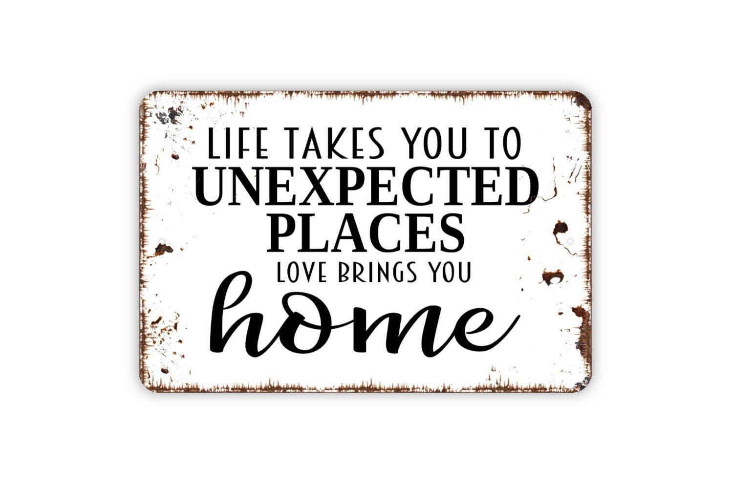 Life Takes You To Unexpected Places Love Brings You Home Sign | Rustic Farmhouse Wall Decor | Custom Metal Sign or Vinyl Sticker