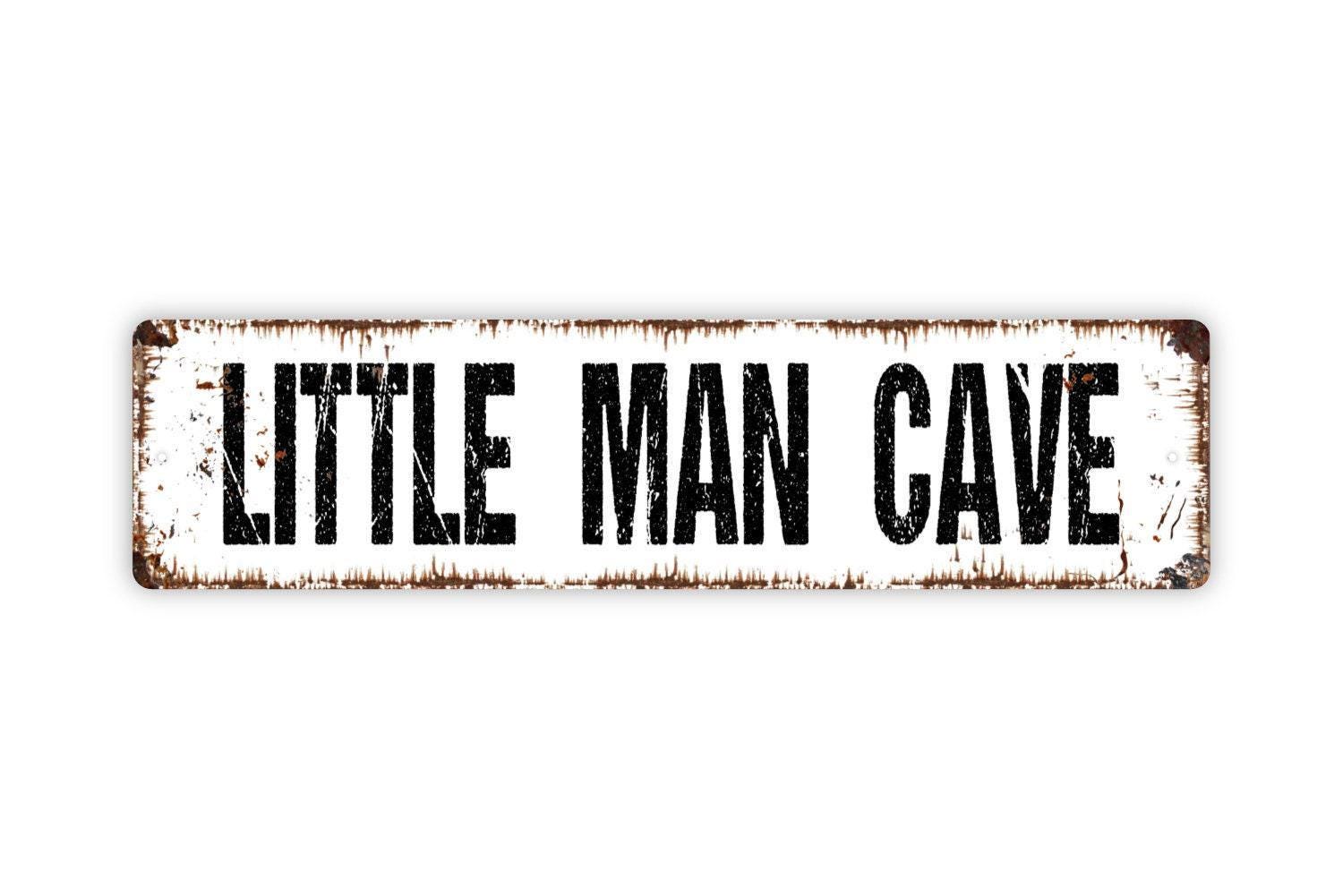 Little Man Cave Sign - Caution Kids Playing Toy Room Clubhouse Boy's Room Vinyl Sticker Or Street Metal Sign or Door Name Plate Plaque