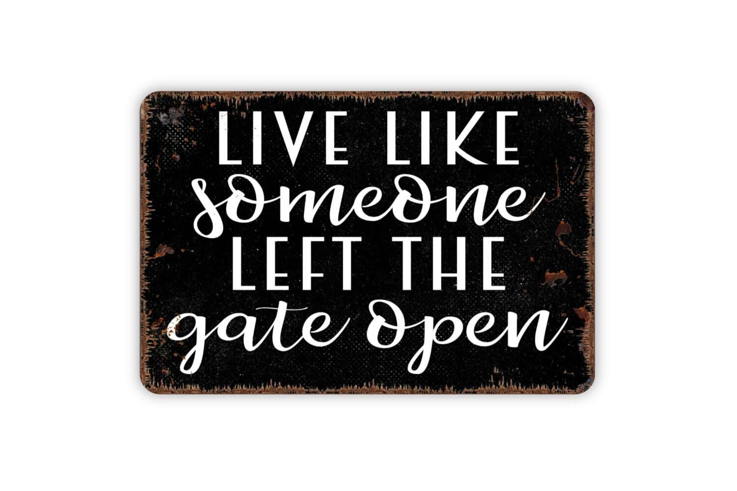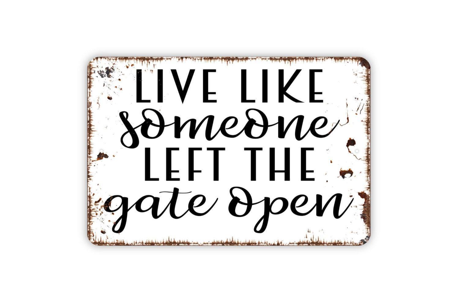 Live Like Someone Left The Gate Open Sign - Funny Farm Metal Indoor or Outdoor Wall Art