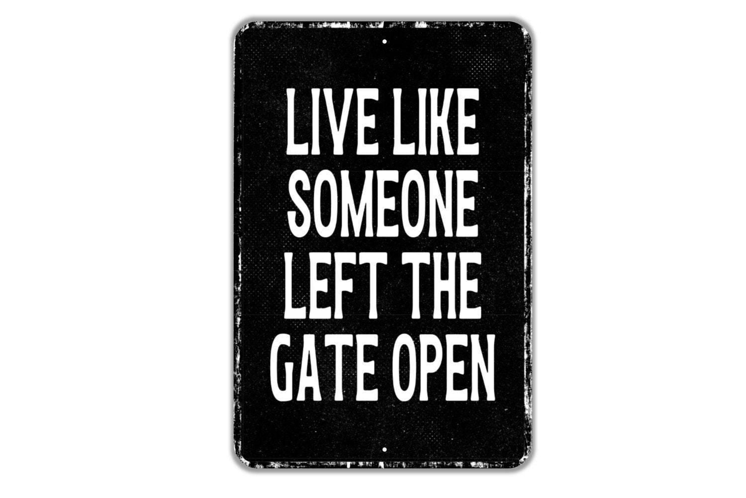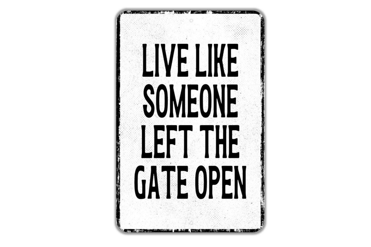 Live Like Someone Left The Gate Open Sign Metal Wall Art or Vinyl Sticker for Farmhouse, Rustic Home, Country Decor, Inspirational Quote